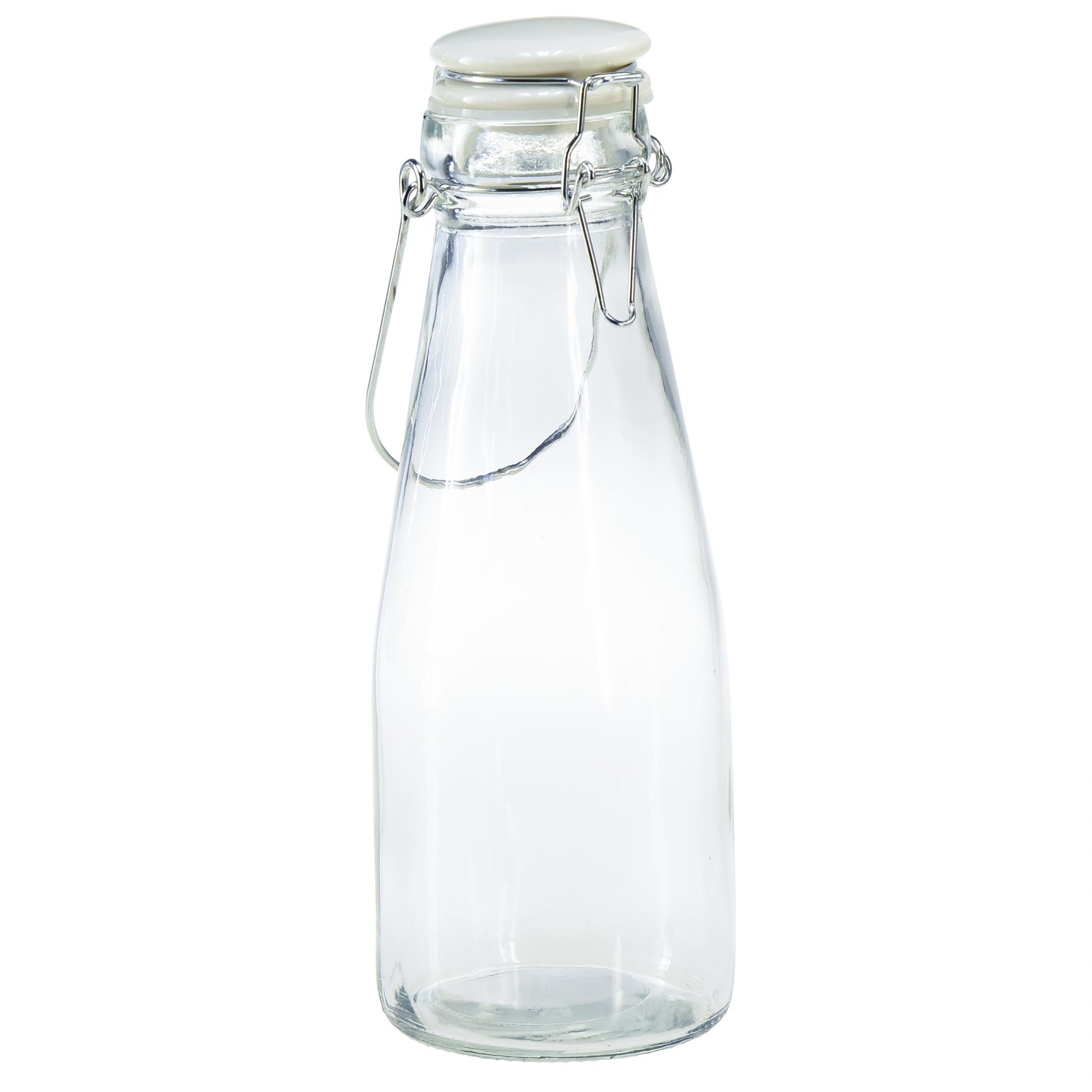 Die Flaschen-Deko ist eine retroschicke Glasflasche, die man auf Anhieb wohl mit einer Milchflasche oder Saftflasche assoziiert. Denn schließlich ist der Verschluss aus Keramik und der Henkel nicht nur optisch ein Hingucker, sondern auch ein Markenzeichen dieser Flaschen. Und der Verschluss ist so dekorativ wie funktionell. Innen finden Sie einen Dichtungsring aus Silikon, was diese Glas-Deko als qualitativ hochwertig auszeichnet.