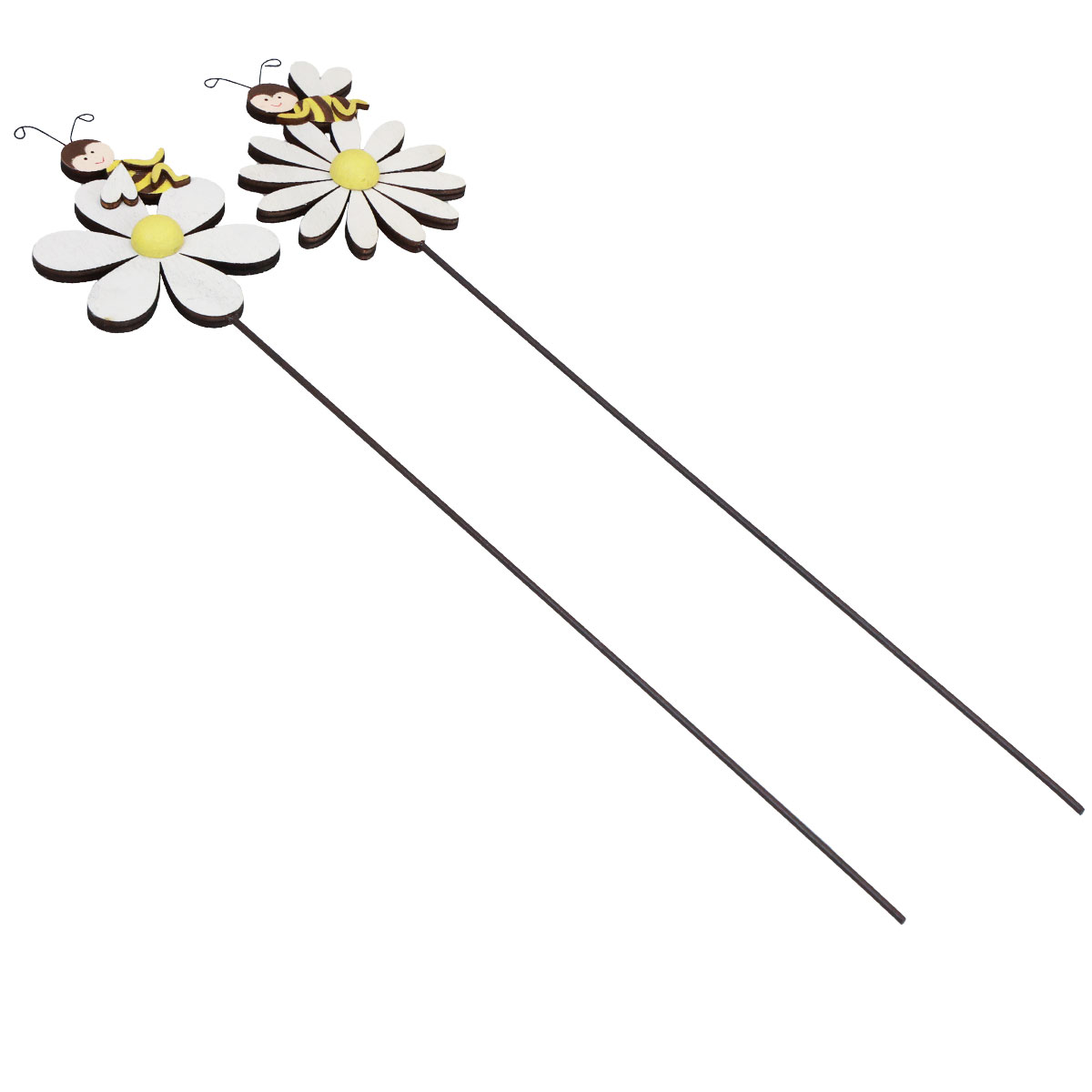 Ein Dekostecker kommt mit sechs Blütenblättern und einer sitzenden Biene, der andere mit zwölf Blütenblättern und einer fliegenden Bienendeko.