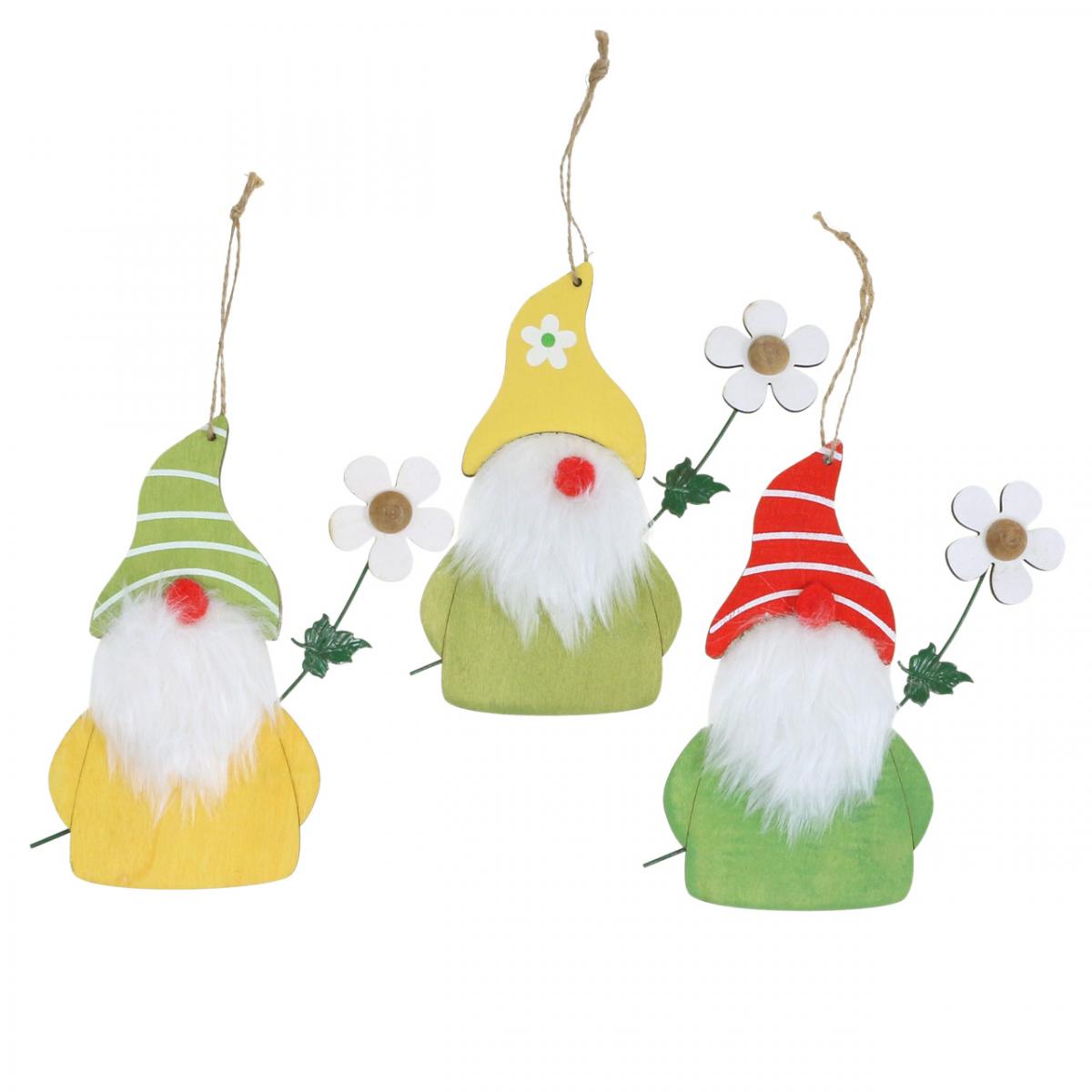 Produktname: Frühlingsdeko Wichtel zum Aufhängen Holz Zwerg mit Blume H17cm 6 St