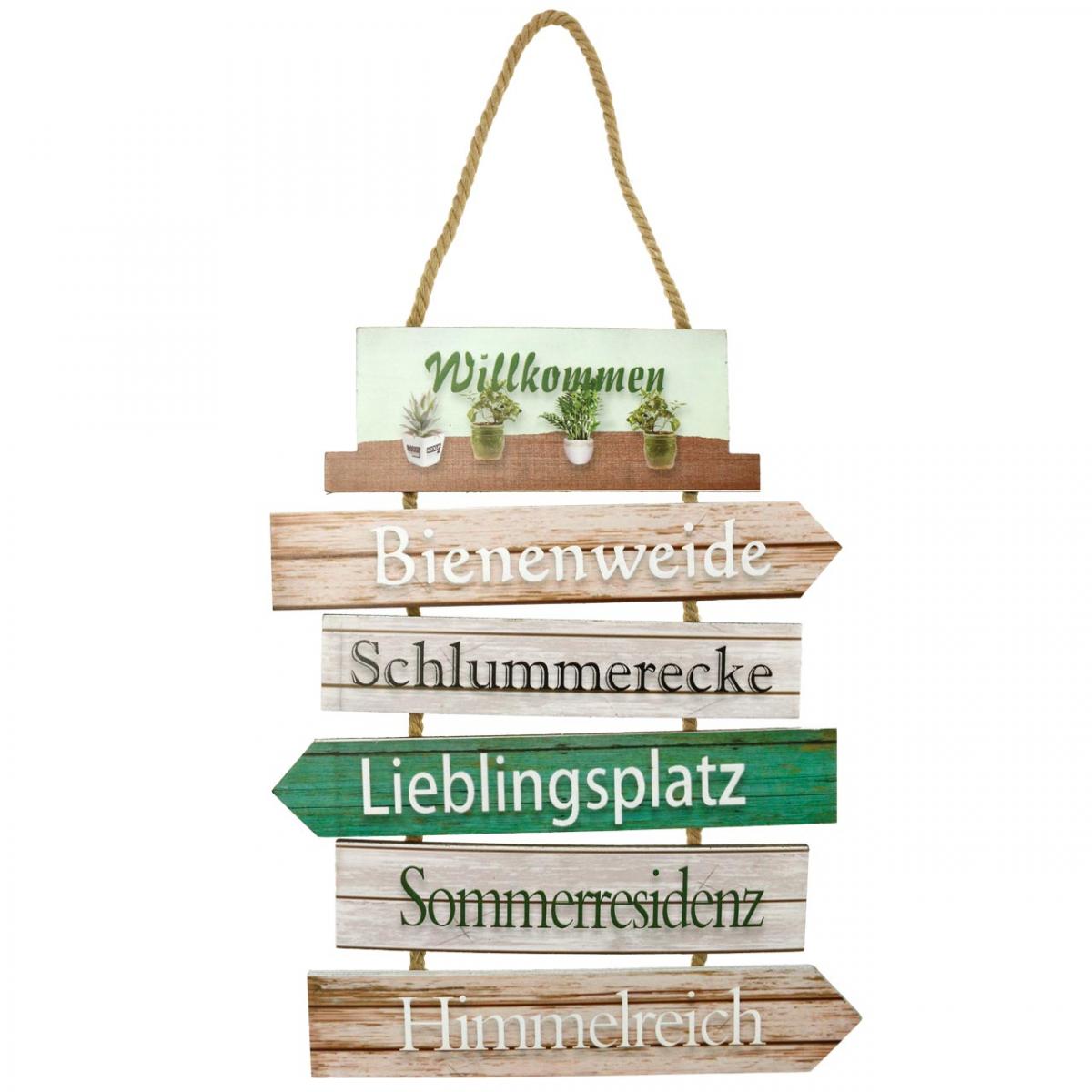Gartendeko Schild zum Hängen Holz Willkommen Wegweiser 38×54cm