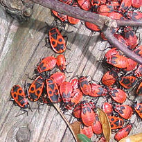 Die einheimische, leuchtend rot-schwarz gemusterte Gemeine Feuerwanze überwintern in hohlen Baumstämmen oder unter Steinen. An einem warmen Frühlingstag werden sie dann aktiv, verlassen ihr Winterquartier und kommen an die Oberfläche. Sie lieben die Geselligkeit...