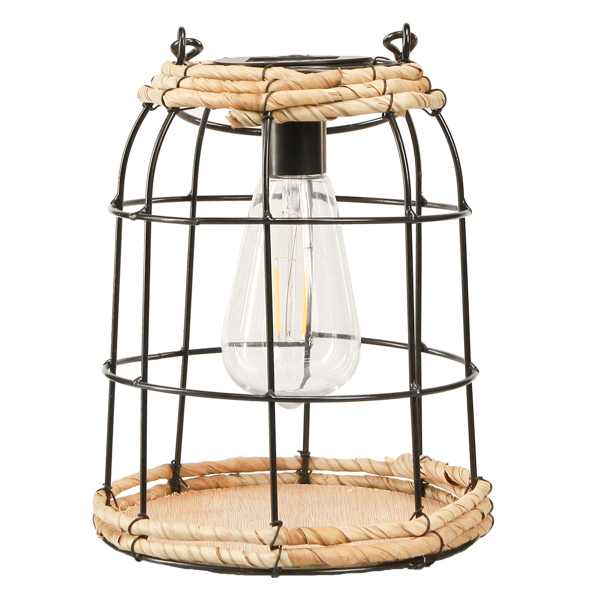 Die Gartenlaterne mit Solar ist eine Gartenlampe aus Metall in Schwarz mit Holz-Boden für das stilvolle Beleuchten Ihres Außenbereichs. Diese elegante Solarlampe kombiniert Funktionalität und Design und bietet Ihnen ein angenehmes, stimmungsvolles Licht bei Gartenpartys und entspannten Abenden auf Balkon oder Terrasse. Das moderne Korbdesign mit Seegras-Akzenten verleiht der Laterne einen Hauch von Boho-Chic und passt zu fast jeder Gartendekoration. Die Laterne ist aus hochwertigem, schwarzem Metall gefertigt und verfügt über eine transparente Kunststoffleuchte, die für eine gleichmäßige Lichtverteilung sorgt. Dank des praktischen Henkels kann sie problemlos gehängt oder aufgestellt werden. Eine auswechselbare Batterie ist inklusive, sodass Sie sie sofort anschalten können. Diese Beleuchtung nutzt Solarenergie, um Ihre Abende in ein angenehmes Licht zu tauchen.