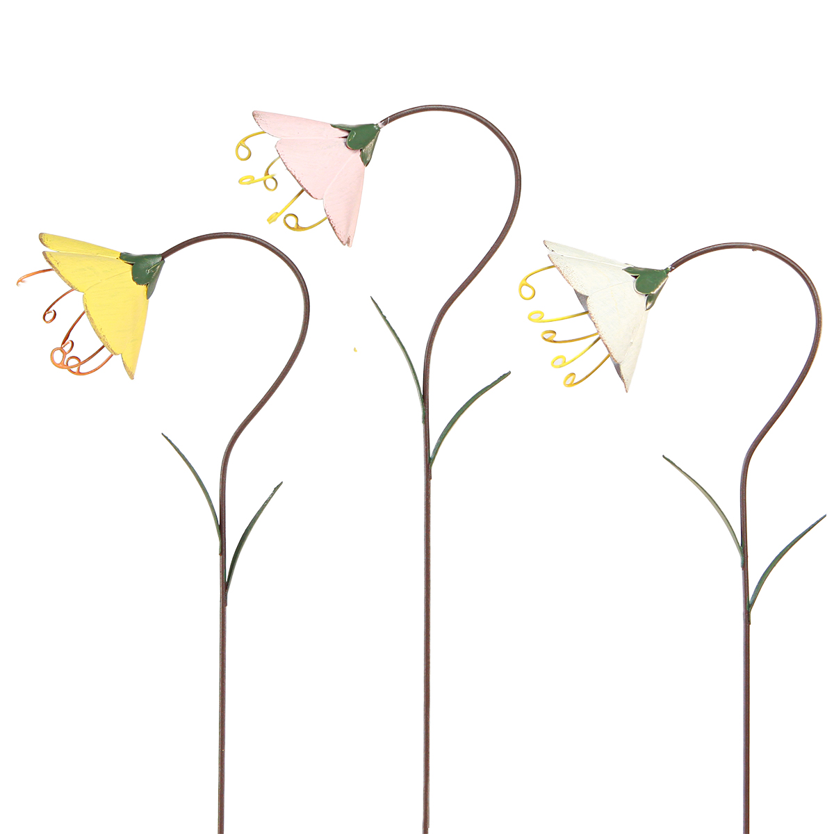 Gartenstecker Blume Metallblumen Gelb Rosa Weiß 49cm 3 St