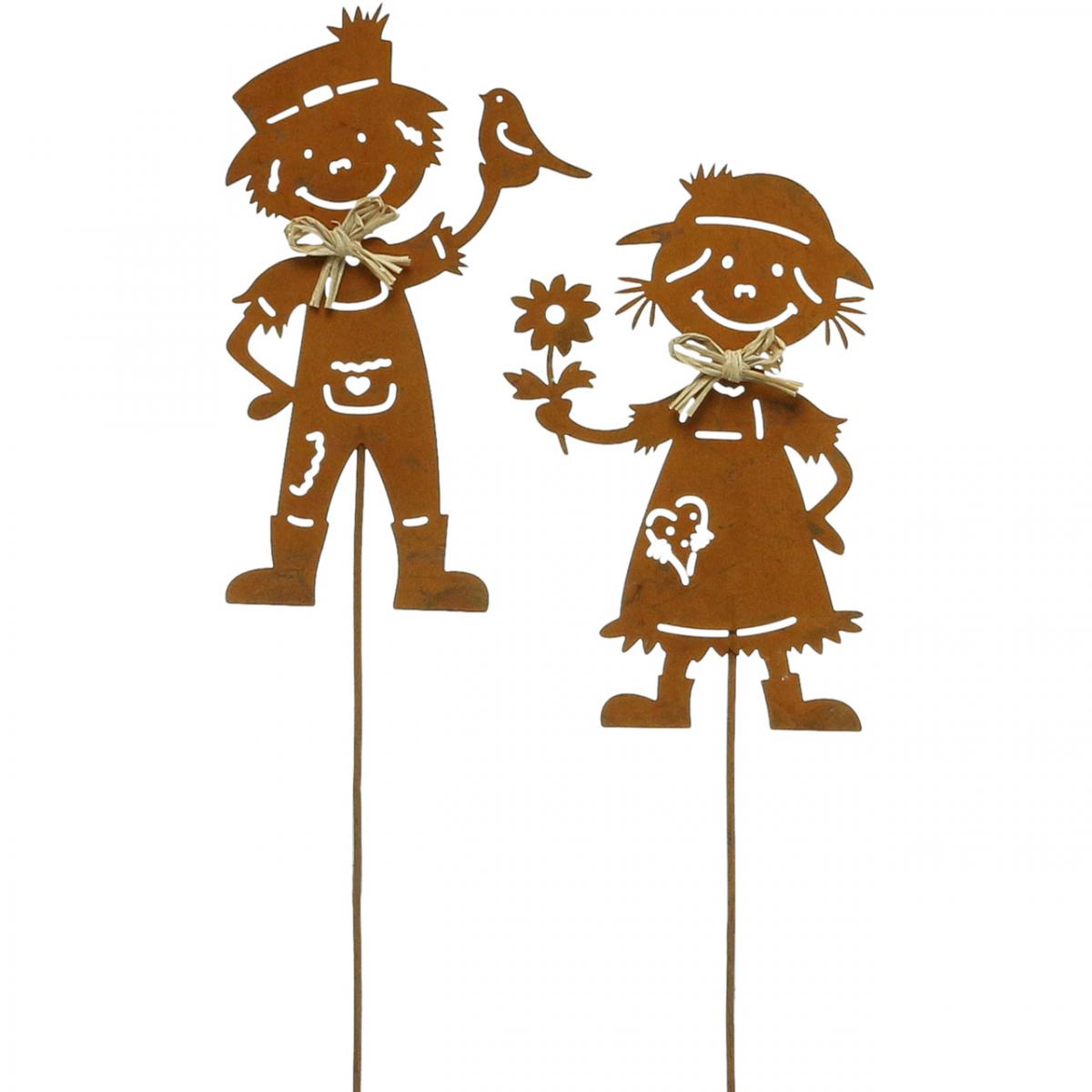 Gartenstecker Rost Optik Gartendeko Mädchen und Junge 4St