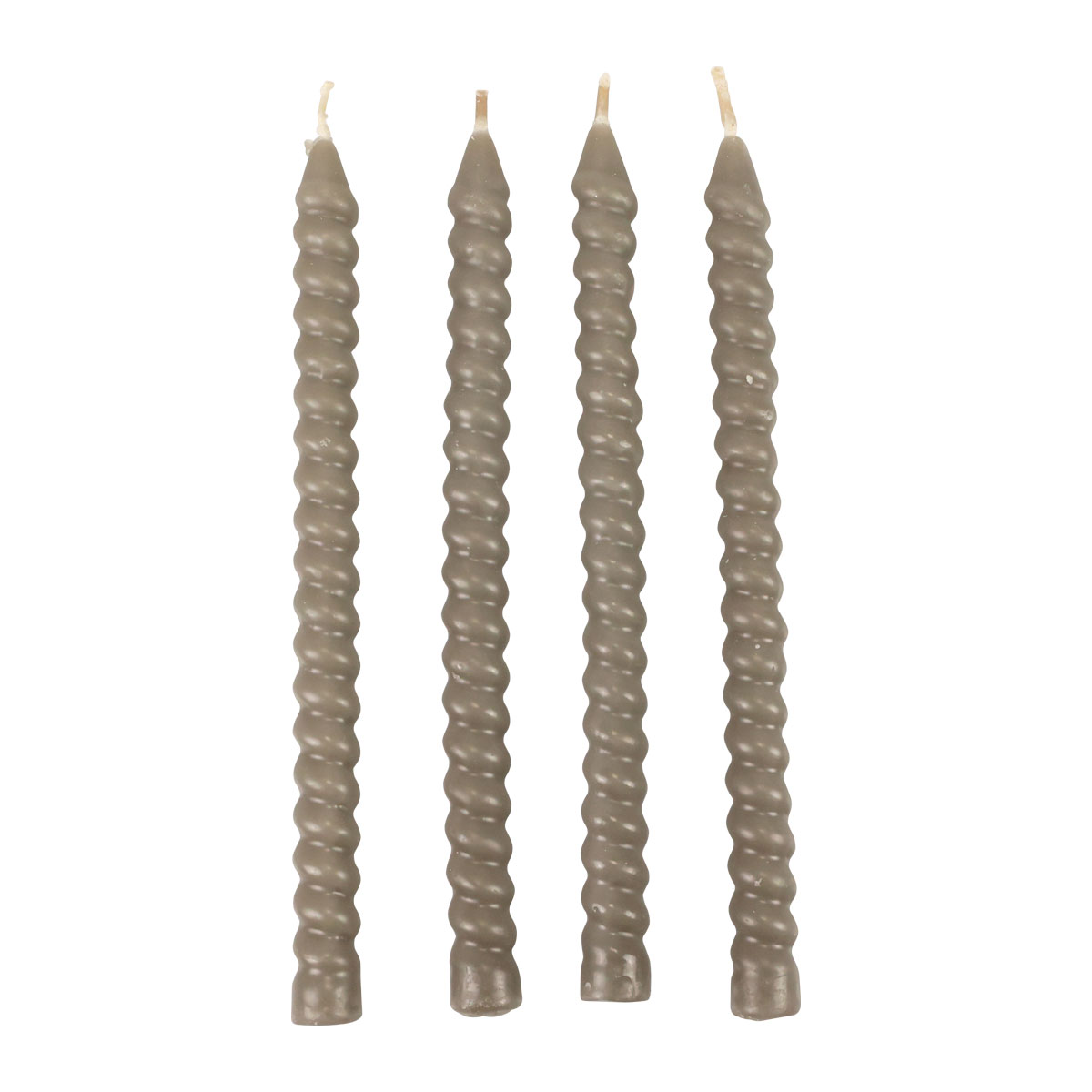Gedrehte Kerzen Spiralkerzen Graugrün Ø1,4cm H18cm 4St