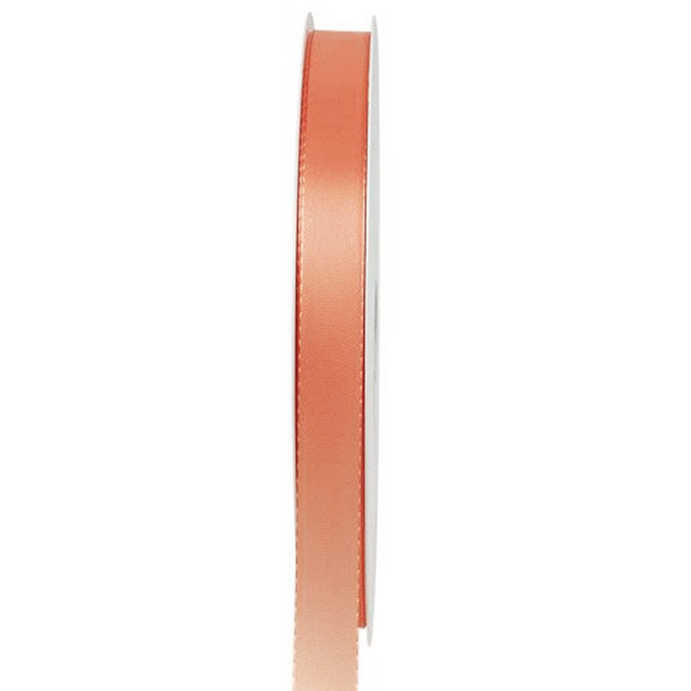 Das Geschenk- und Dekorationsband in Apricot ist mit seiner Länge von ungefähr 50 Metern auf eine Rolle aus Kunststoff gewickelt. Die Breite beträgt circa 8 Millimeter.