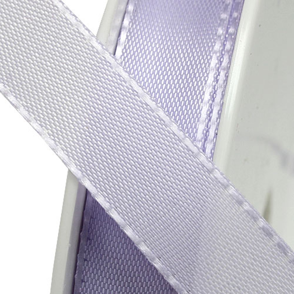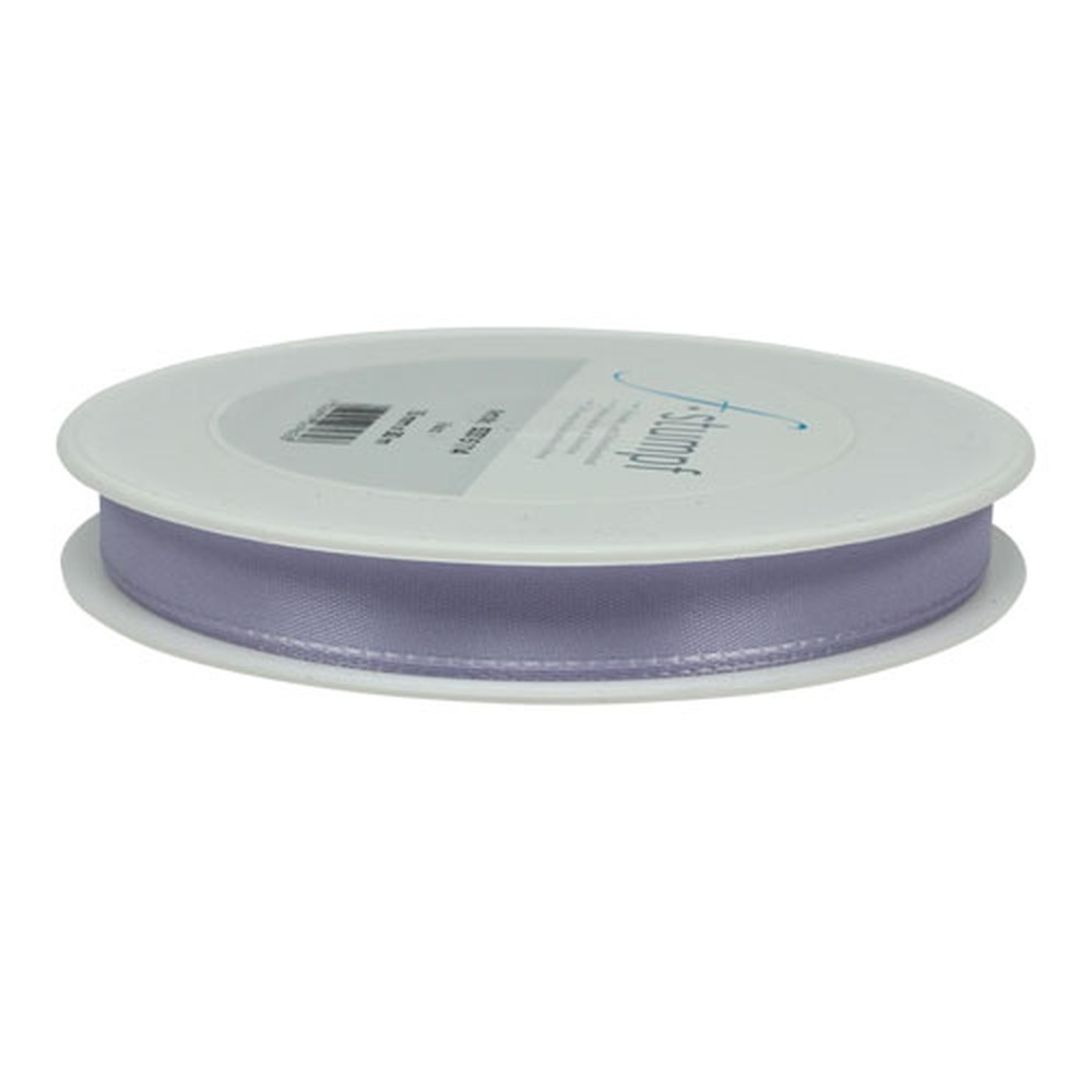 Das Geschenk- und Dekorationsband in hellem Flieder ist auf eine Rolle aus Kunststoff gewickelt und hat eine Länge von circa 50 Metern sowie eine Breite von ungefähr 15 Millimetern.
