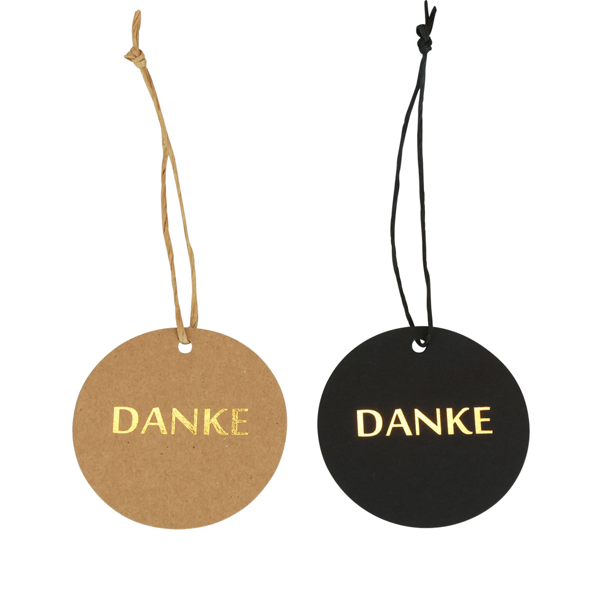 Produktname: Geschenkanhänger „Danke“ Papier Schwarz/Braun Ø6cm 100St