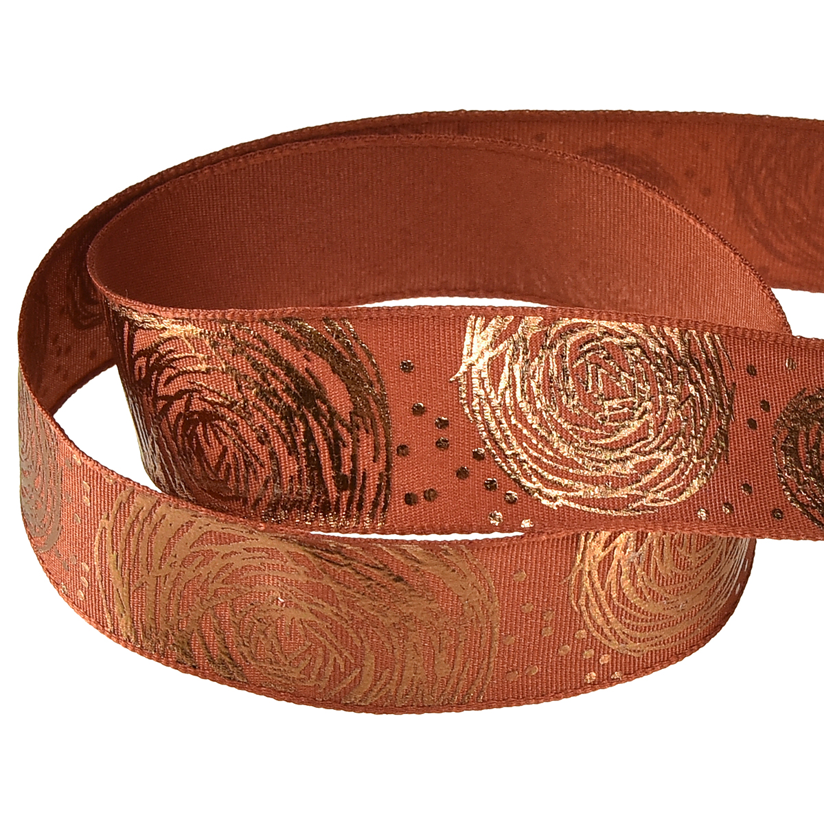 Geschenkband mit goldenen Rosen Dekoband Rotbraun 25mm 15m