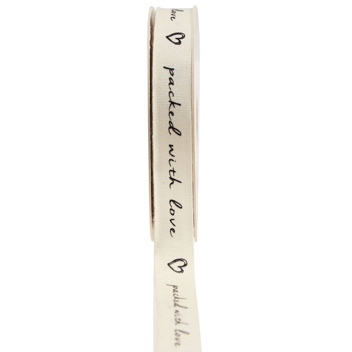 Das Band aus reiner, cremefarbener Baumwolle ist mit der Aufschrift „packed with love“ und Herzen bedruckt und überbringt damit den Beschenkten auf jeden Fall die Botschaft, dass Ihr Geschenk von Herzen kommt. Das Geschenkband befindet sich auf einer Spule aus Karton, die wie das Band selbst biologisch abbaubar ist. So gelingt nachhaltige Deko!