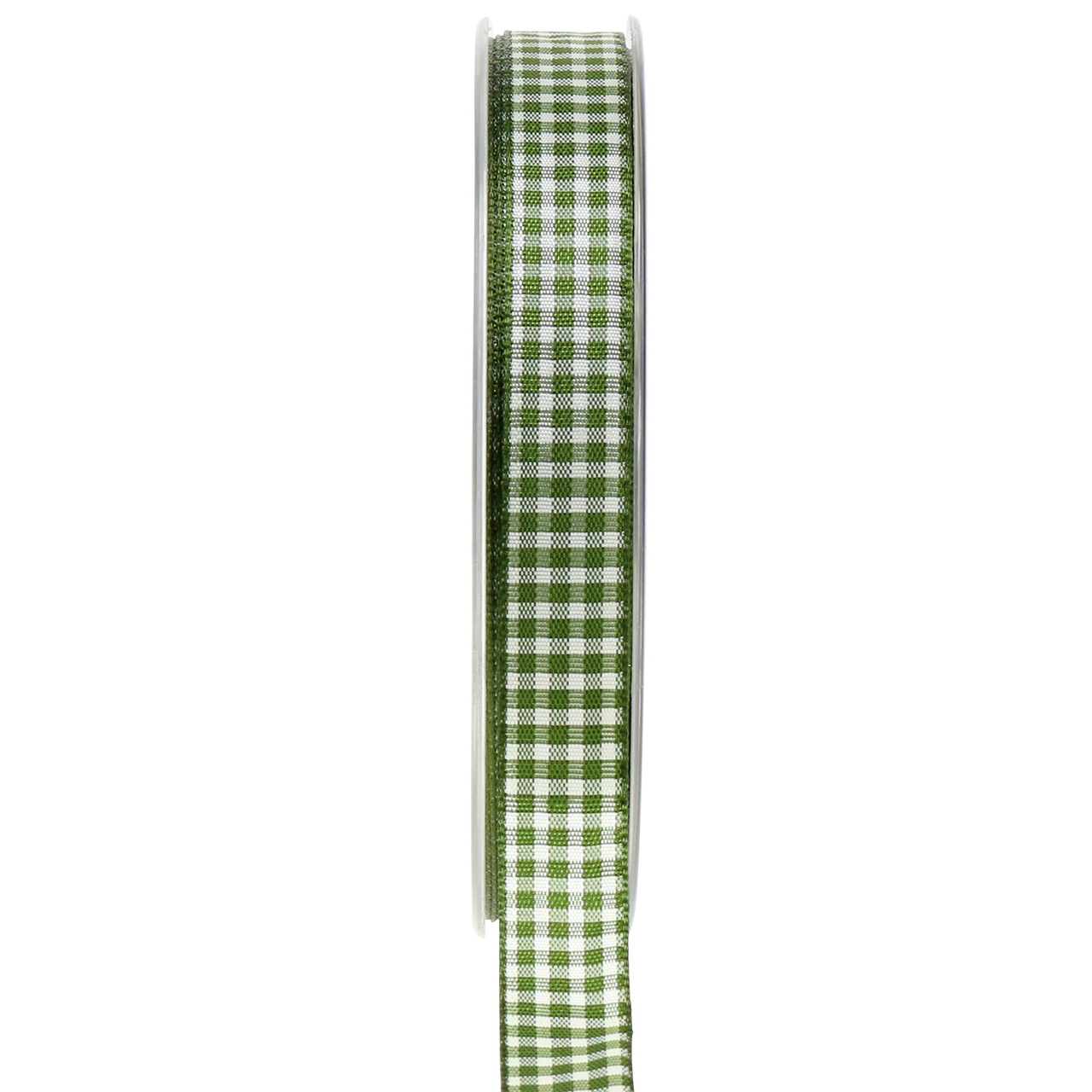 Das grüne Geschenkband mit Karomuster hat eine Breite von etwa 15 Millimetern und eine Länge von etwa 20 Metern. Es besteht aus etwa 68% Viskose und 32% Polyester. Geliefert wird es auf einer praktischen Kunststoff-Rolle.