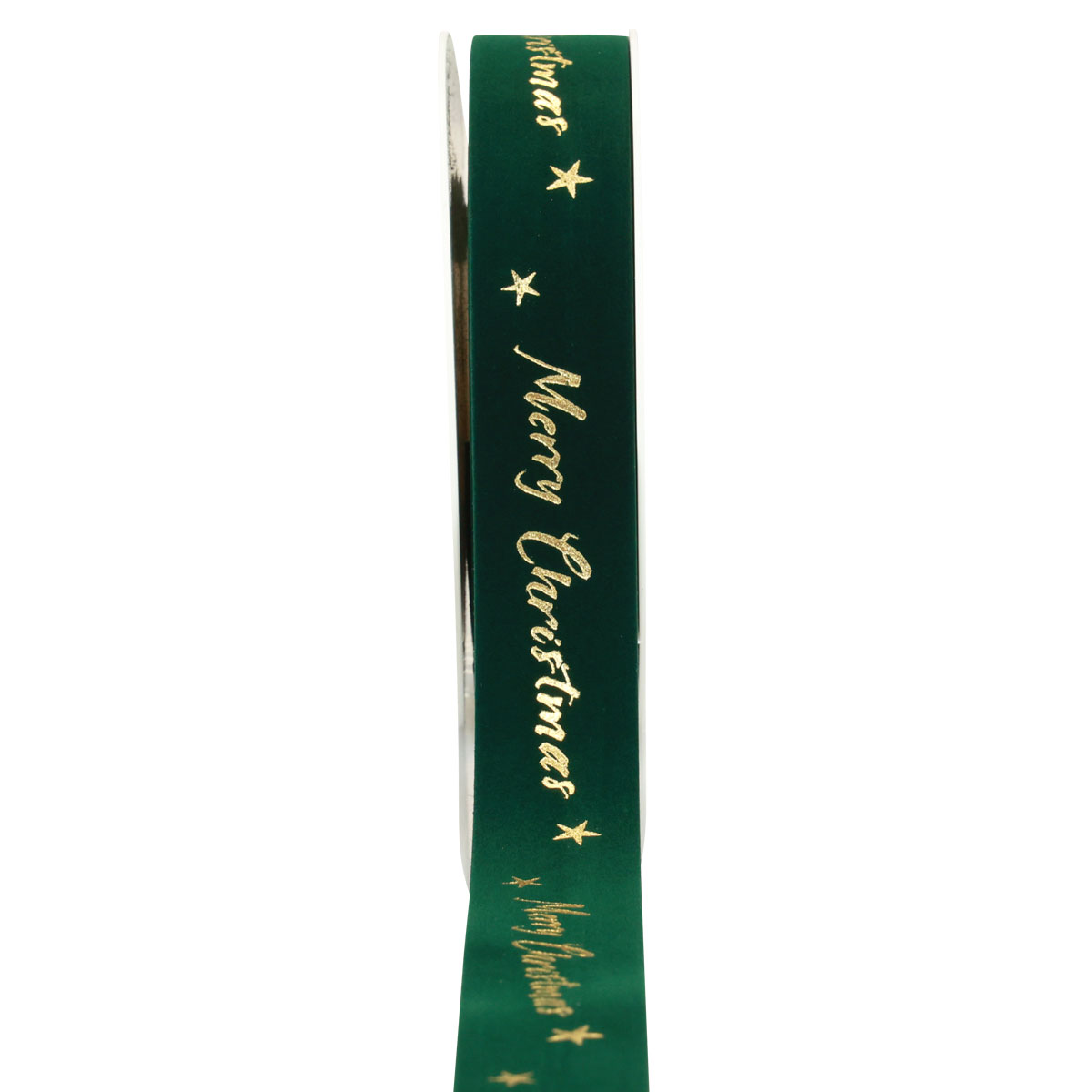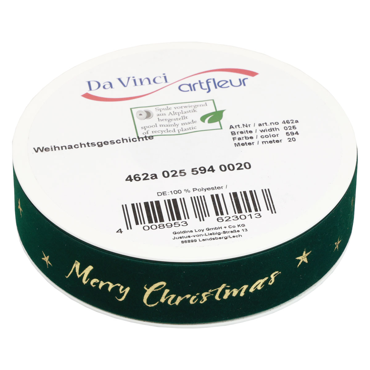 Produktname: Geschenkband, Weihnachtsband, Samtband Grün Merry Christmas 25mm 20m