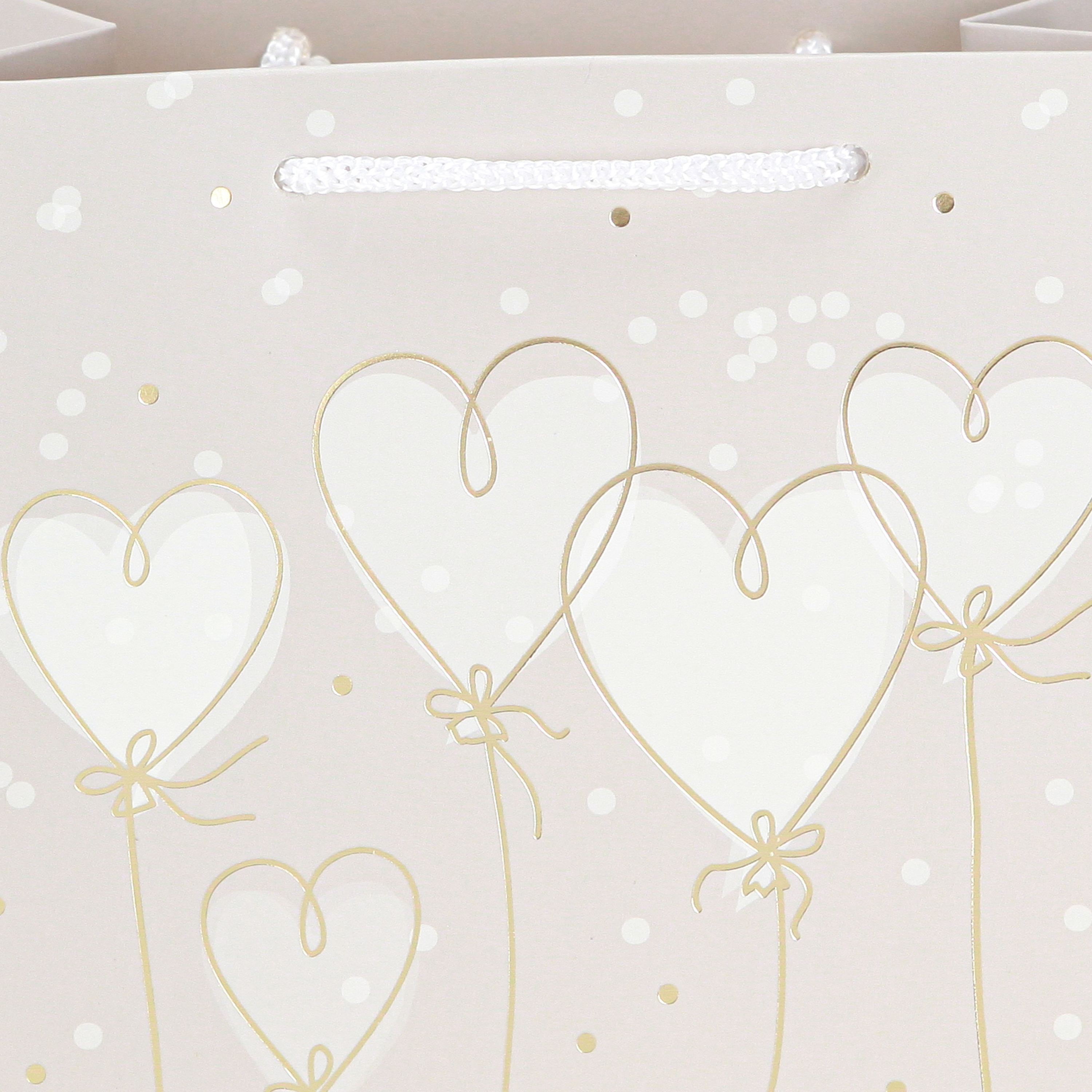 - Elegantes Herz-Design mit weißen Herz-Luftballons und goldener Aufschrift