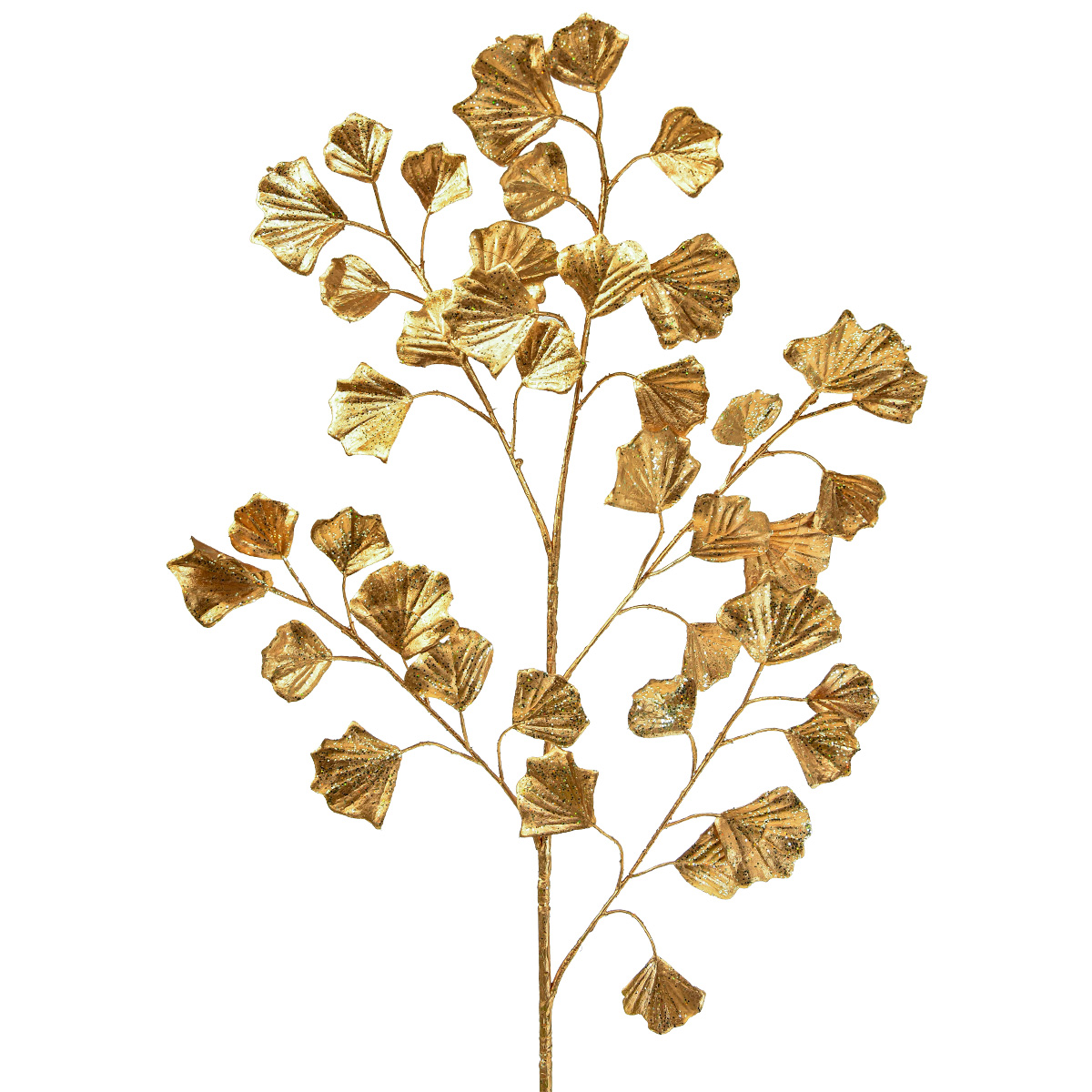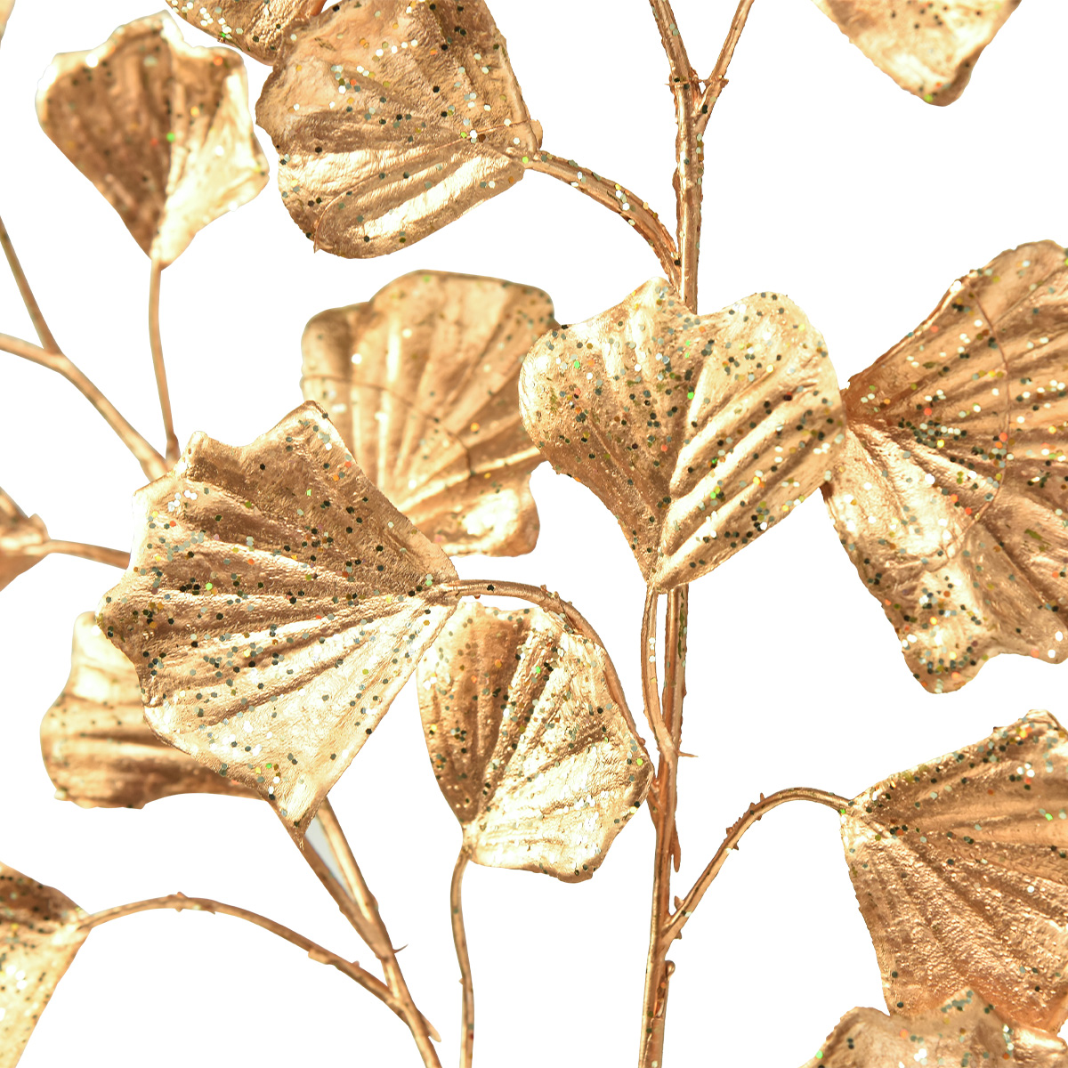 Gingko Zweig Deko Kunstpflanze Bronze Glitter 84cm
