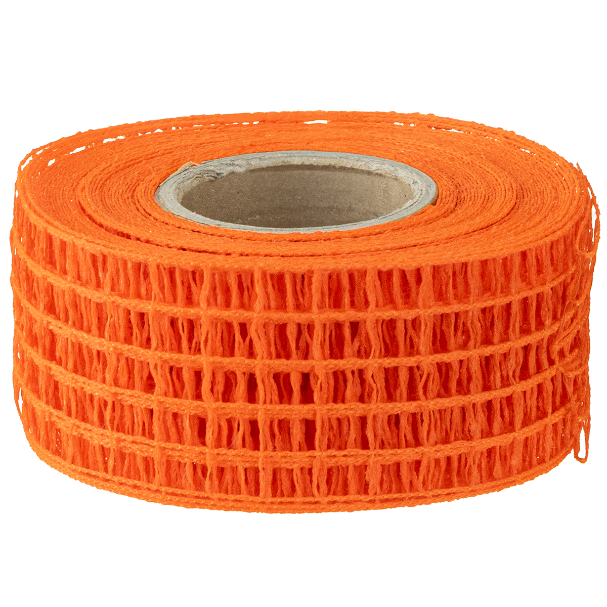 Das Gitterband in Orange wird als kleine Rolle zu circa 10 Metern Länge angeboten. Das Band selbst ist in etwa 4,5 Zentimeter breit.