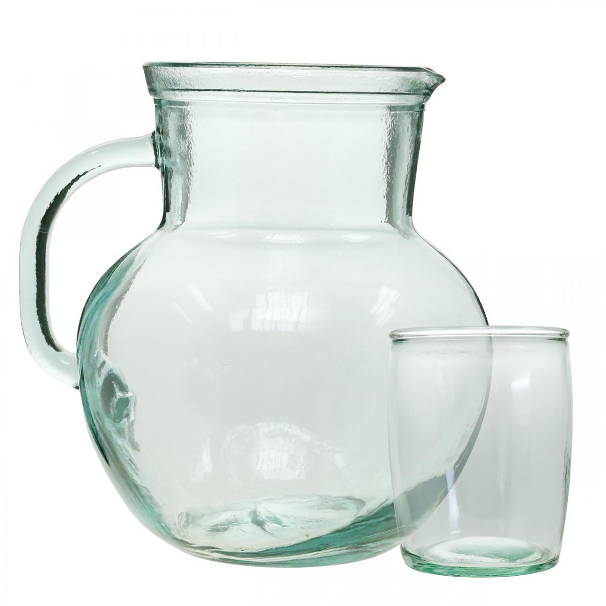 Produktname: Glaskanne mit Trinkgläsern, Getränkeset zum Servieren Bläulich Klar H20cm/11,5cm 5-teilig