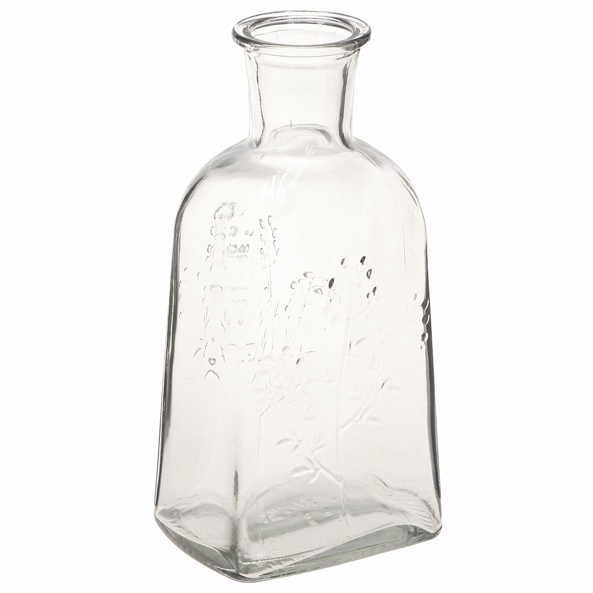 Unsere Glasvase in Gestalt einer Flasche ist mehr als nur ein dekorativer Hingucker – sie ist ein stilvolles Accessoire, das sich nahtlos in verschiedenste Einrichtungskonzepte integrieren lässt. Mit einer Höhe von circa 19 cm und einem rustikalen Design strahlt diese hochwertige Vase eine zeitlose Eleganz aus. Der raffinierte Beerenzweig, der als Motiv plastisch auf die Vase geprägt ist, verleiht ihr eine inspirierende Note. Diese Vase ist ideal für moderne oder klassische Interieurs geeignet und unterstreicht dezent die Schönheit von Blumenarrangements im Landhausstil. Ihre rechteckige Standfläche sorgt für Stabilität, während das durchsichtige Material die Farben der arrangierten Pflanzen wunderbar zur Geltung bringt. Ob im Wohnzimmer, auf dem Schreibtisch oder in Empfangsbereichen, diese Glasvase ist stets eine hervorragende Wahl für stilbewusste Dekorationen.