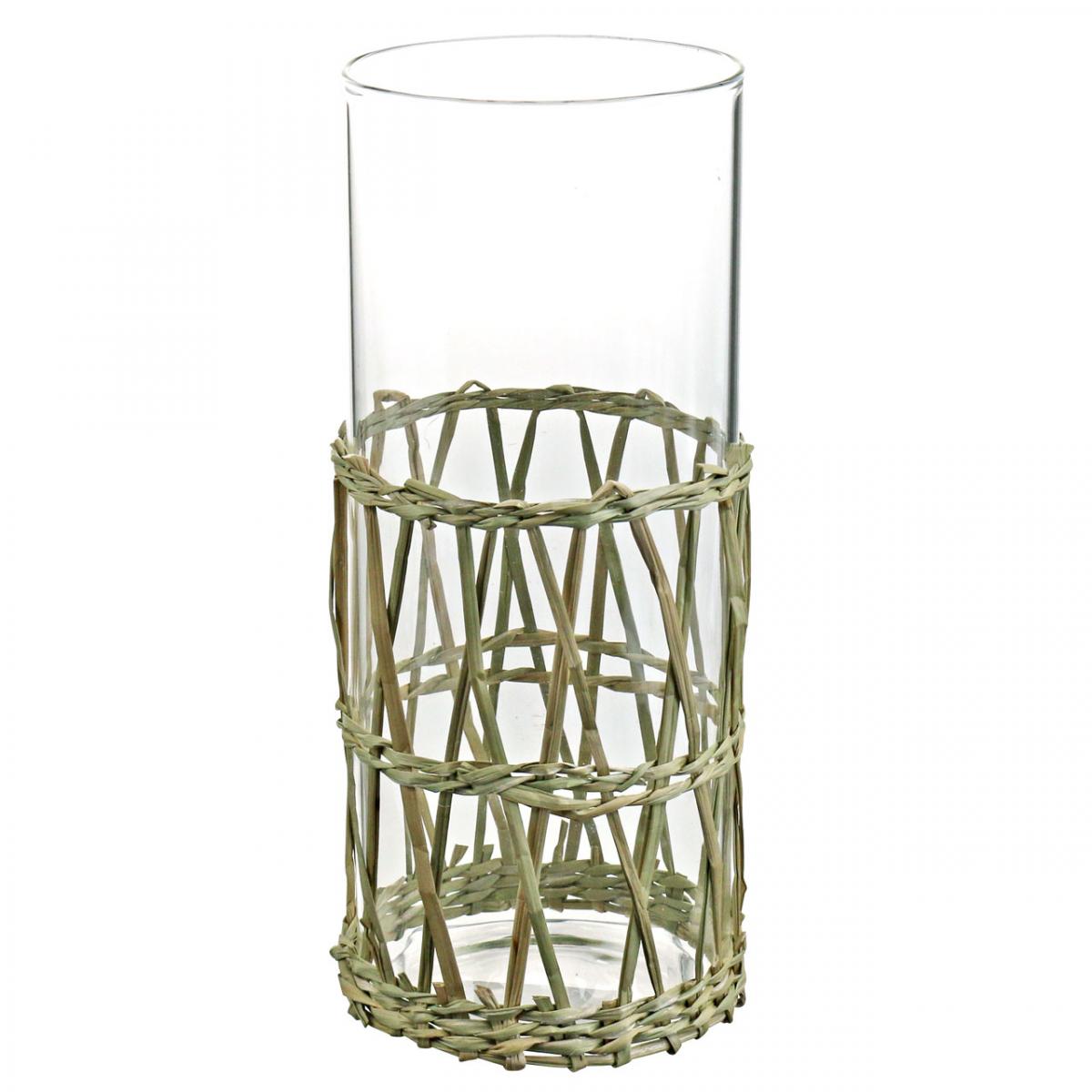 Glasvase Zylinder geflochtene Gräser Deko-Vase Ø8cm H21,5cm