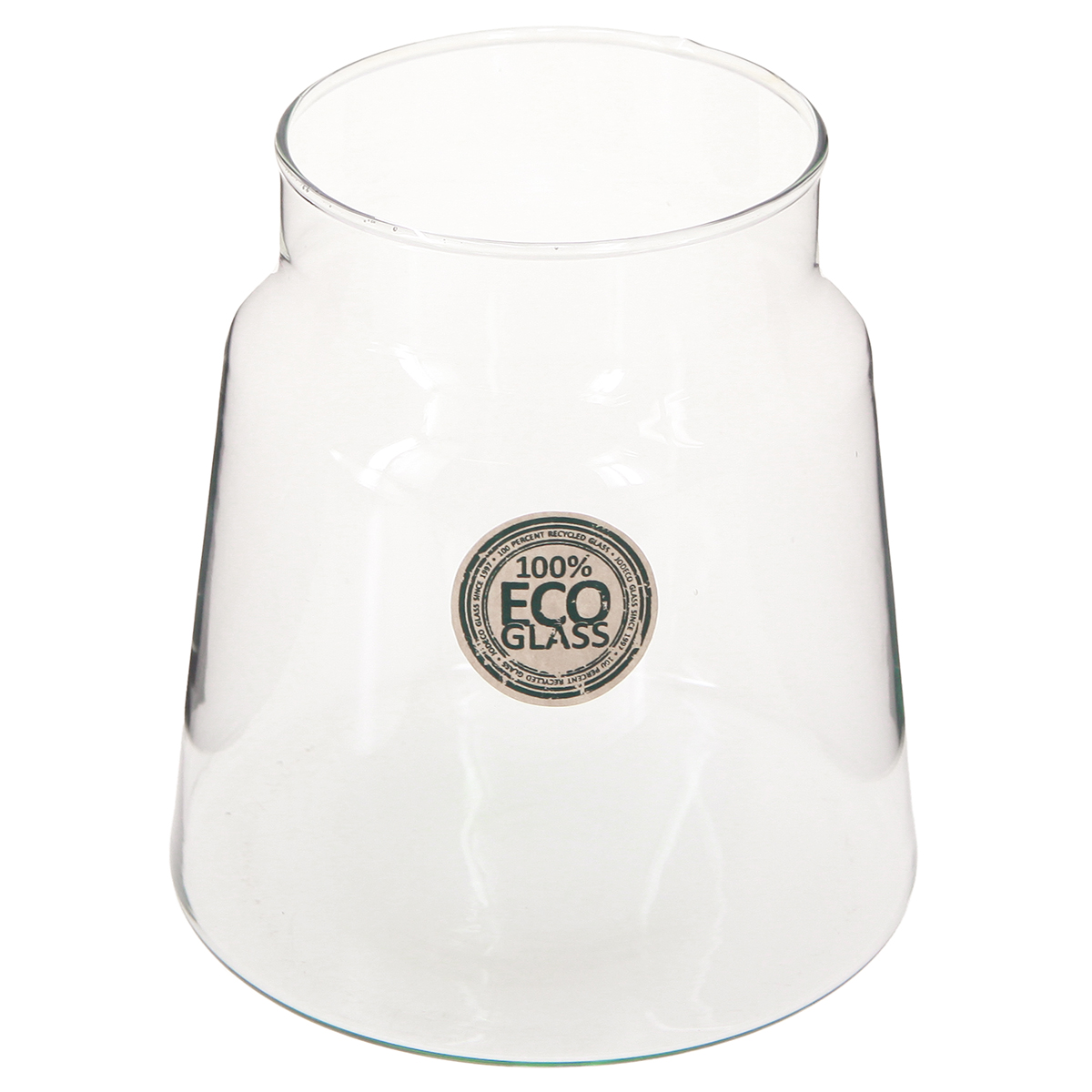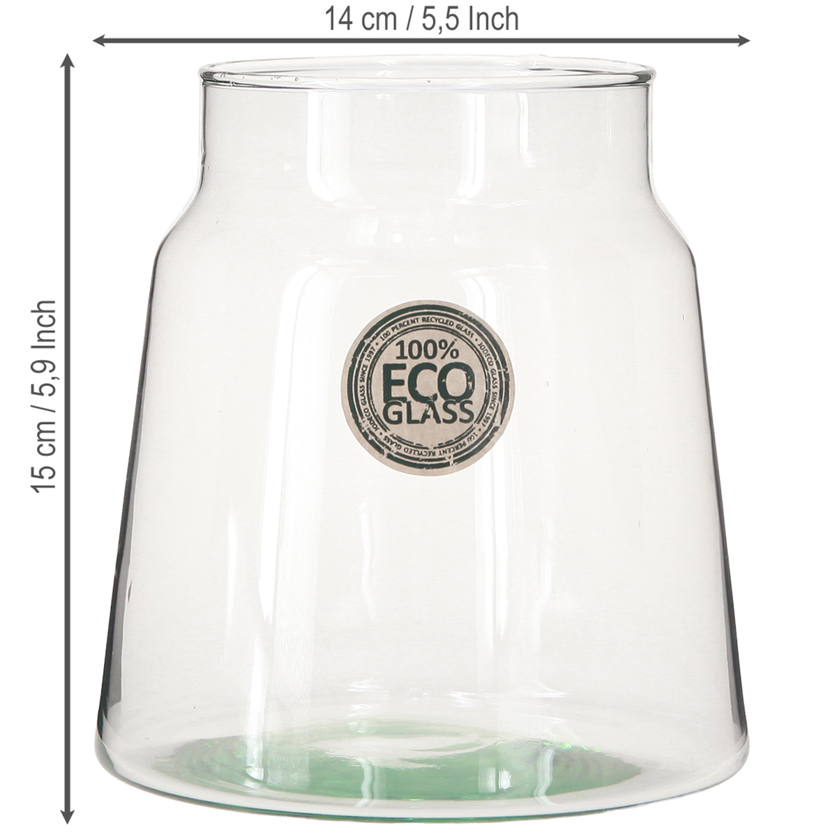 Die Vase ist aus klarem, zu 100 Prozent recyceltem Glas gefertigt und in ihrer Form sehr zeitlos und edel. Unten sehr breit und oben sich leicht verjüngend, bietet die Glasvase viel Platz für Ihre Dekoideen. Sie können sie ganz schlicht als Blumenvase nutzen oder mit Streudeko als Bodengrund und schönen LED-Stumpenkerzen als Dekoglas verwenden. Gestalten Sie eine kleine Dekolandschaft mit Frühblühern, kleinen Häschen und Dekoeiern für die Frühlingsdeko zu Ostern. Setzen Sie im Winter Kunstschnee, Rehfiguren und Tannengrün für die Adventsdeko in die große Vase aus Glas ein.
