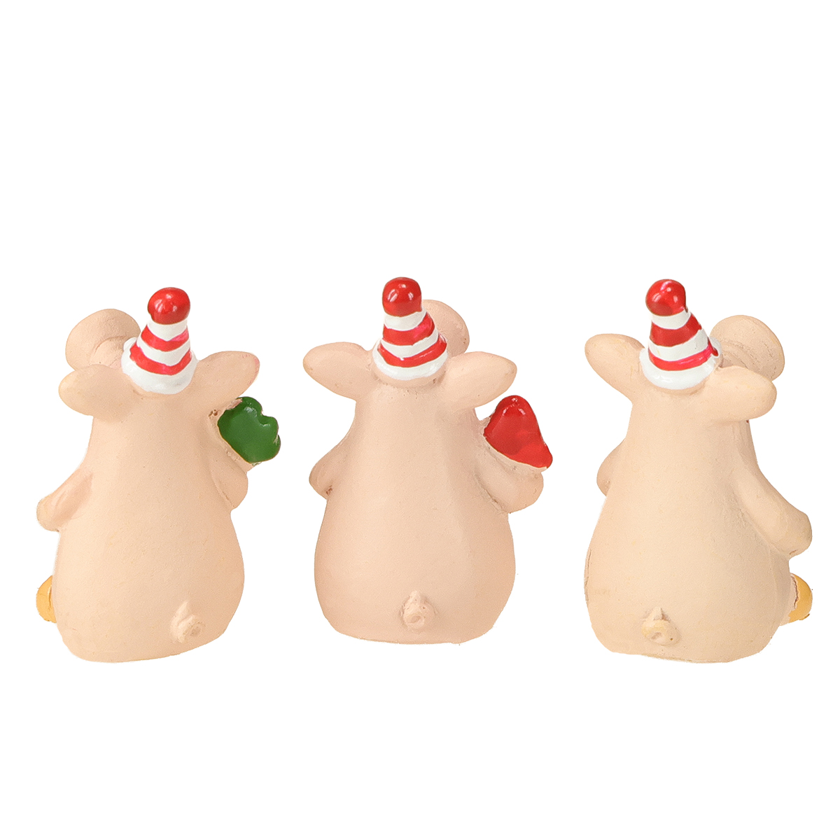 Das Glücksschwein mit Glücksbringern begeistert auf den ersten Blick. Die Mini-Schweinchen, jedes etwa 5 cm groß, sind detailreich und liebevoll von Hand bemalt – eine wahre Augenweide! Die Deko-Schweine als sitzende Figuren kommen gleich im Set, bestehend aus sechs verschiedenen Glücksbringern, daher. Ob mit einem Kleeblatt, einem Glückspilz oder einem Hufeisen, jedes Schweinchen trägt stolz einen anderen traditionellen Glücksbringer. Gestreifte Hütchen auf den Schweinchen machen sie besonders festlich – perfekt für die Silvesterparty! Ein kleiner Klebepunkt auf der Unterseite sorgt dafür, dass sie sicher an ihrem Platz bleiben und nicht so leicht wegrutschen. Einfach toll in Kombination mit weiteren festlichen Accessoires von Floristik24 – wie wäre es mit glanzvollen Kerzenhaltern oder strahlenden Lichterketten?