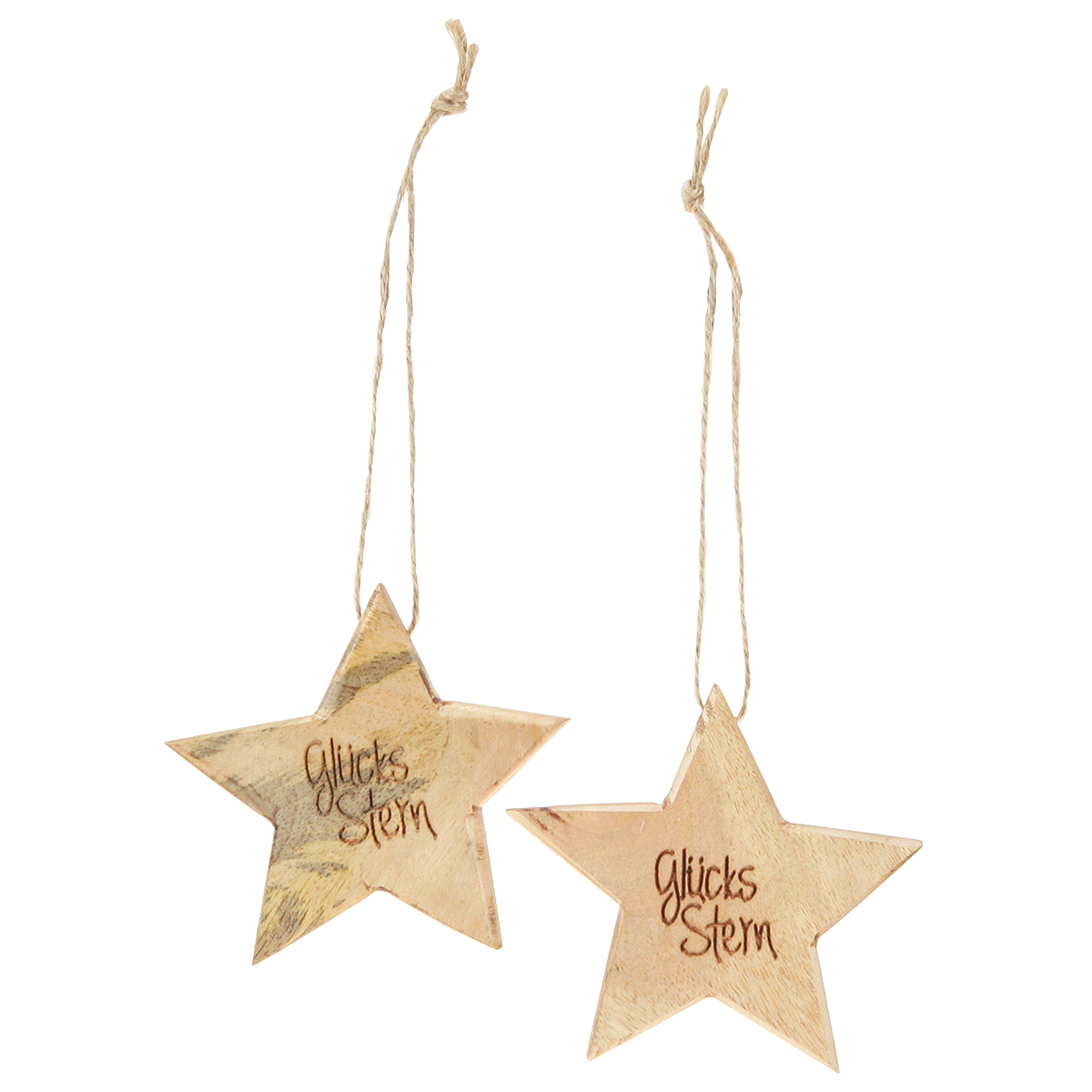 Glücksstern Deko Holzstern Natur 8cm Hängend 8er Set
