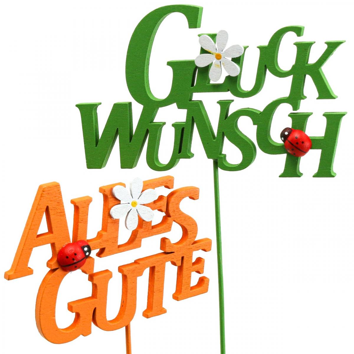 Produktname: Glückwunsch Blumenstecker Pflanzenstecker Holz 8cm 6 St