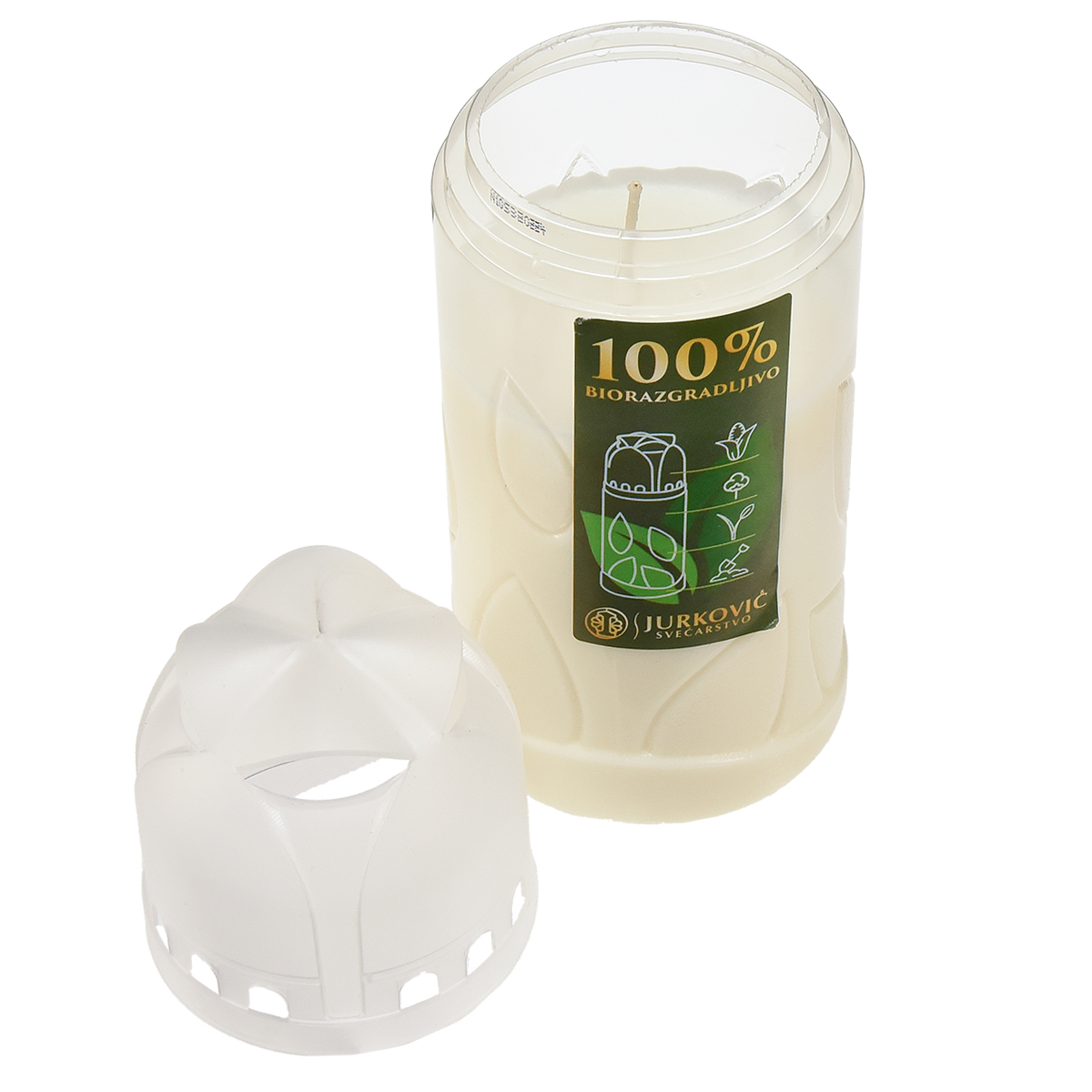 Das Besondere an dieser Grabkerze ist ihr transparenter Mantel aus 100 Prozent kompostierbarem Kunststoff, was die Kerze zum umweltfreundlichen Weggefährten für jedes Grab macht. Das Siegel ICP bestätigt, dass die Kerze industriell kompostierbar ist und somit Ihrem Wunsch nach einem nachhaltigen Leben, auch im Andenken, entspricht.