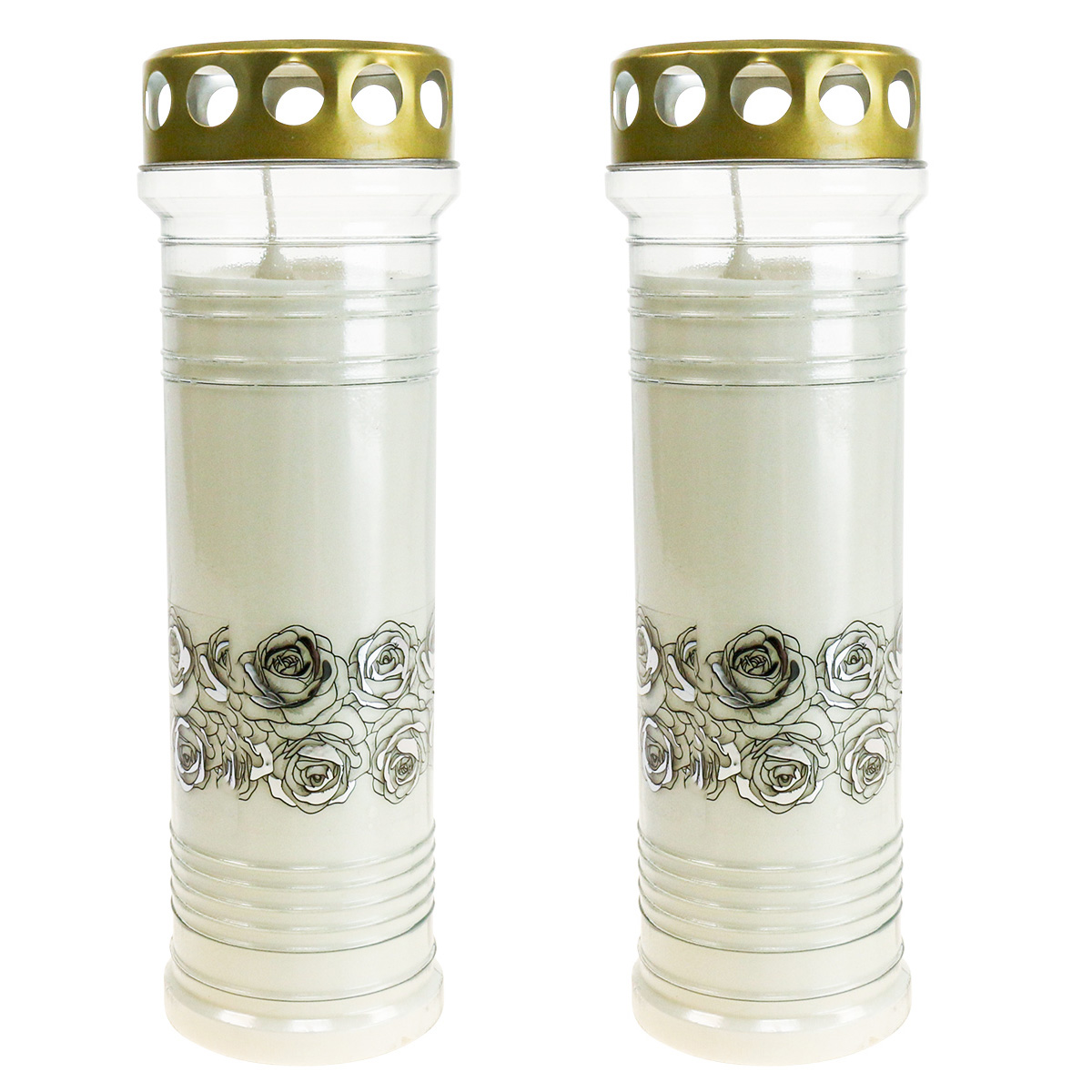 Grabkerzen Rosen Weiß Trauerlicht Ø7cm H23,5cm 100h 2St