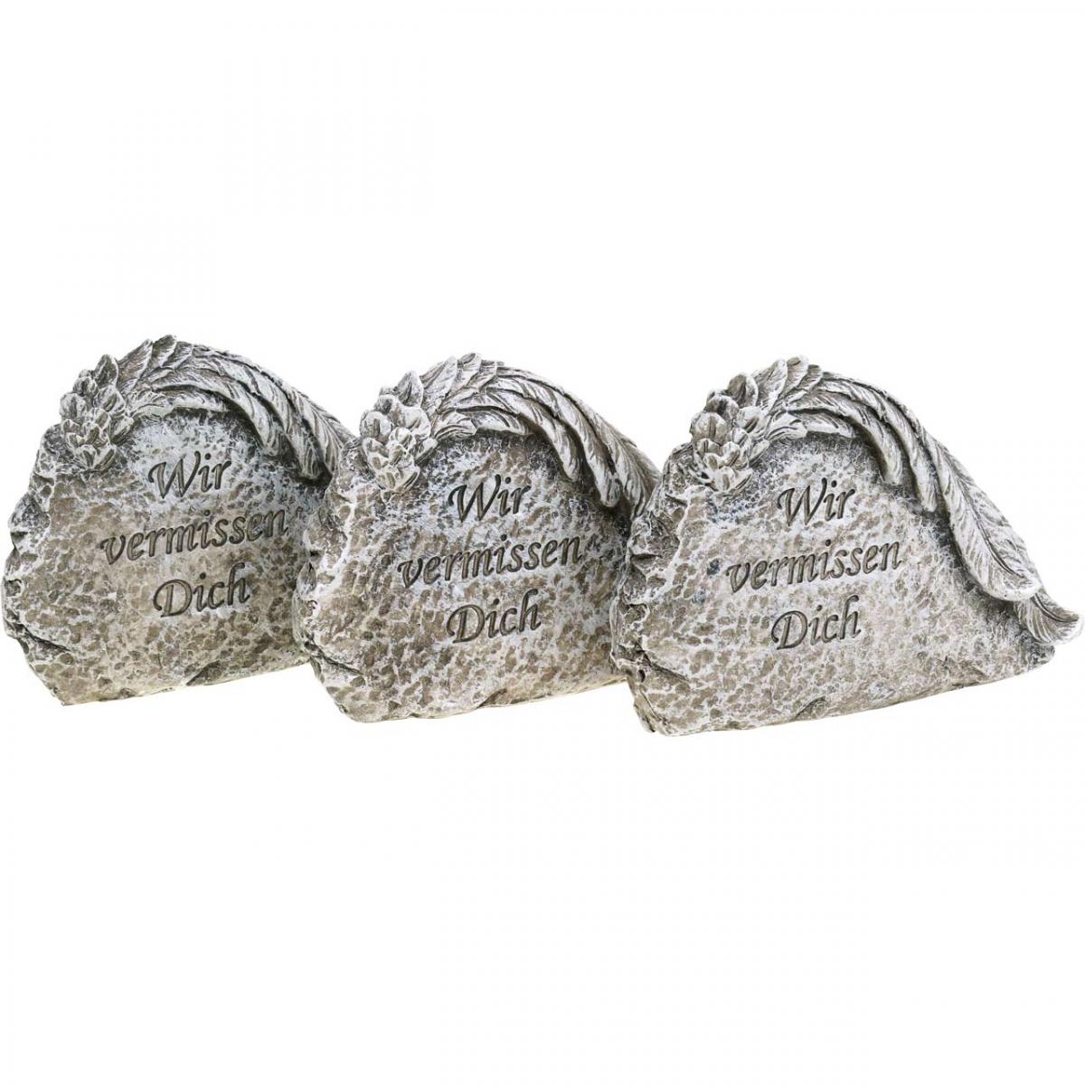Grabschmuck Engelsflügel und Spruch Kunststein Grau 13cm 3 St