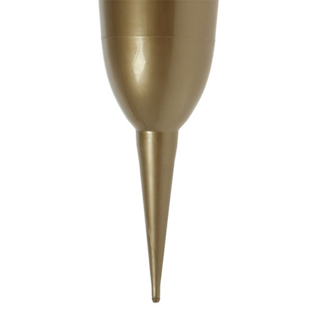 Die goldene Grabvase aus hochwertigem Kunststoff besitzt eine Gesamthöhe von circa 40 Zentimetern, von denen etwa 30 Zentimeter auf das Wasserreservoir und 10 Zentimeter auf den Steckdorn entfallen. Der Außendurchmesser der Deko Vase liegt bei ungefähr 15 Zentimetern, innen misst sie circa 9 und unten 6 Zentimeter.