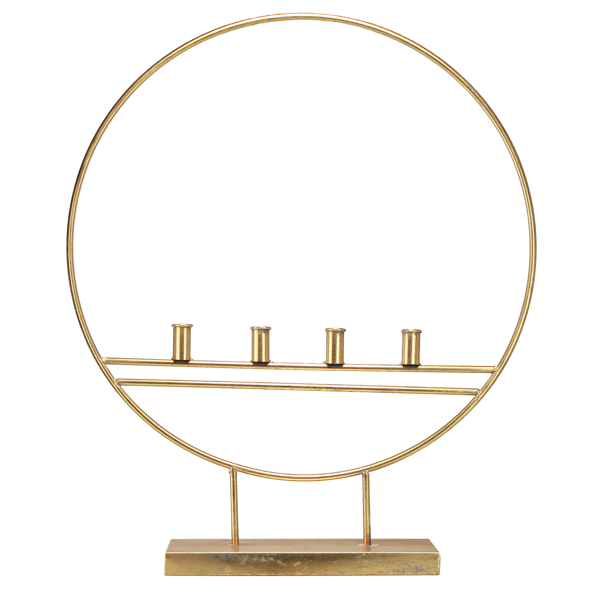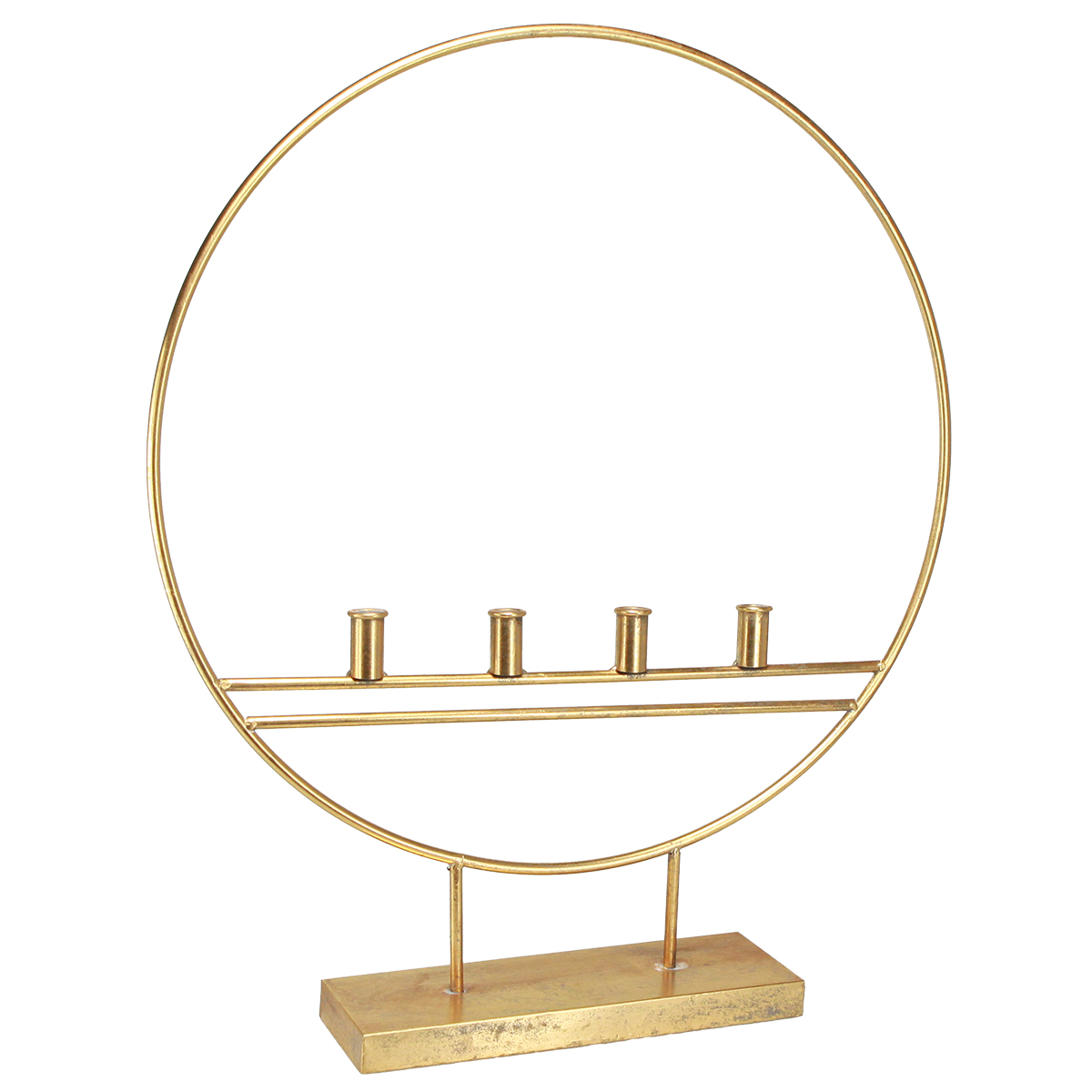 Produktname: Großer Stabkerzenhalter im Ring Metall Gold Antik H77cm Für 4 Kerzen
