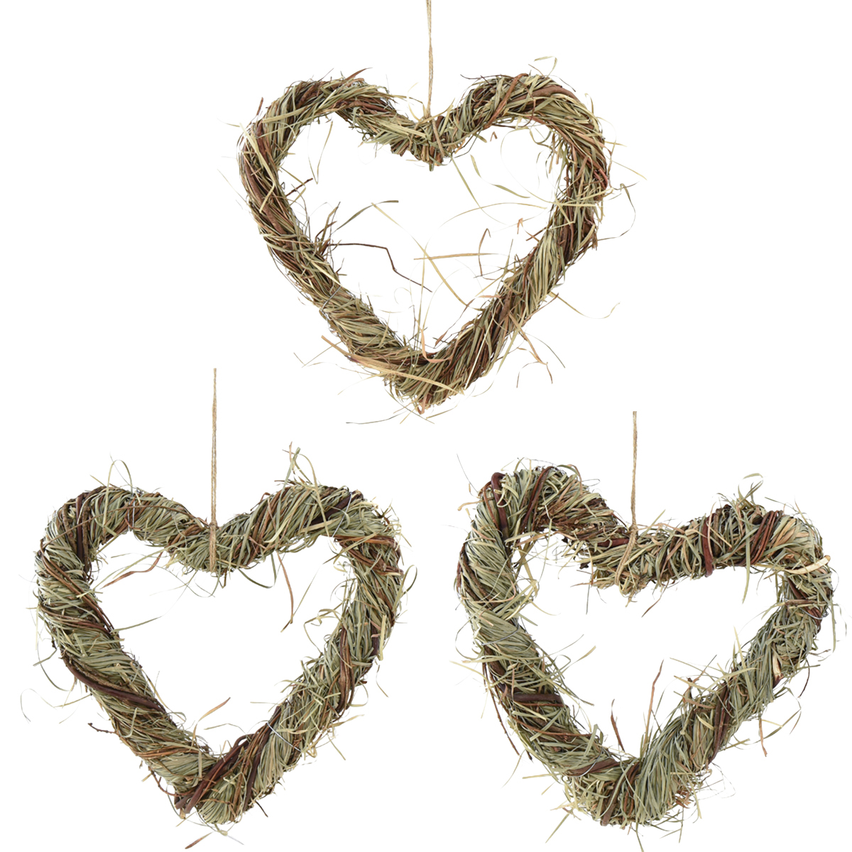 Sie erhalten das natürlich schöne Deko-Herz aus Rebenzweigen und Heu zu 3 Stück.