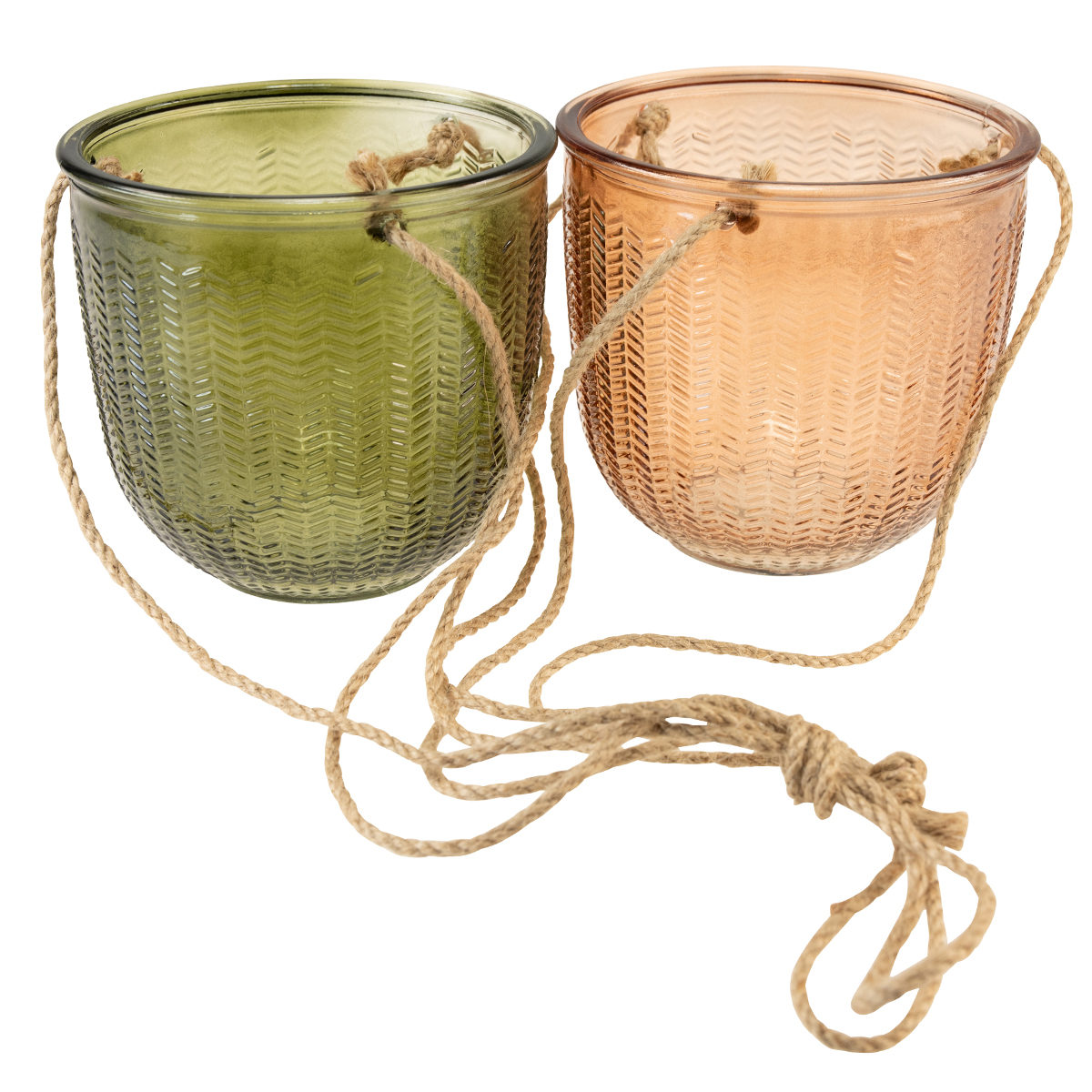 Sie erhalten die Glastöpfe zu 2 Stück mit braunem und grünem getönten Glas. Stellen Sie LED-Lichter hinein oder umwickeln Sie die Jutekordeln mit einer Lichterkette für ein nostalgisch schönes Deko-Windlicht. Kleine künstliche Sukkulenten passen ebenso in die Glastöpfe.