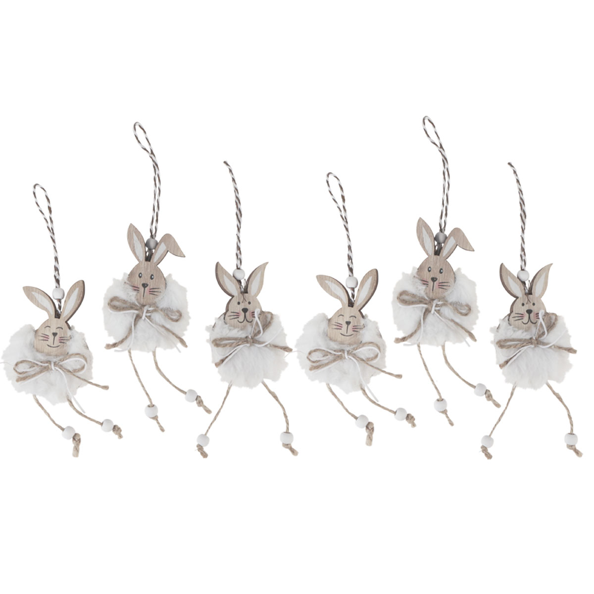 Produktname: Hasen Deko Holzhasen zum Hängen Natur Weiß 5cm×12cm 6St