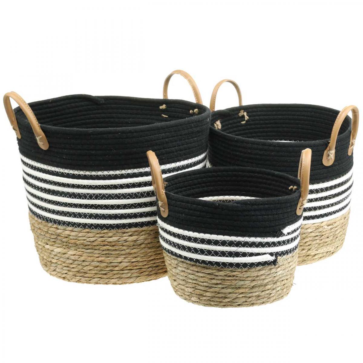 Henkelkorb, Ordnungshelfer, Pflanzkorb, Utensilo Schwarz-Weiß, Natur Ø32/28/23cm H30/25/19cm 3er-Set