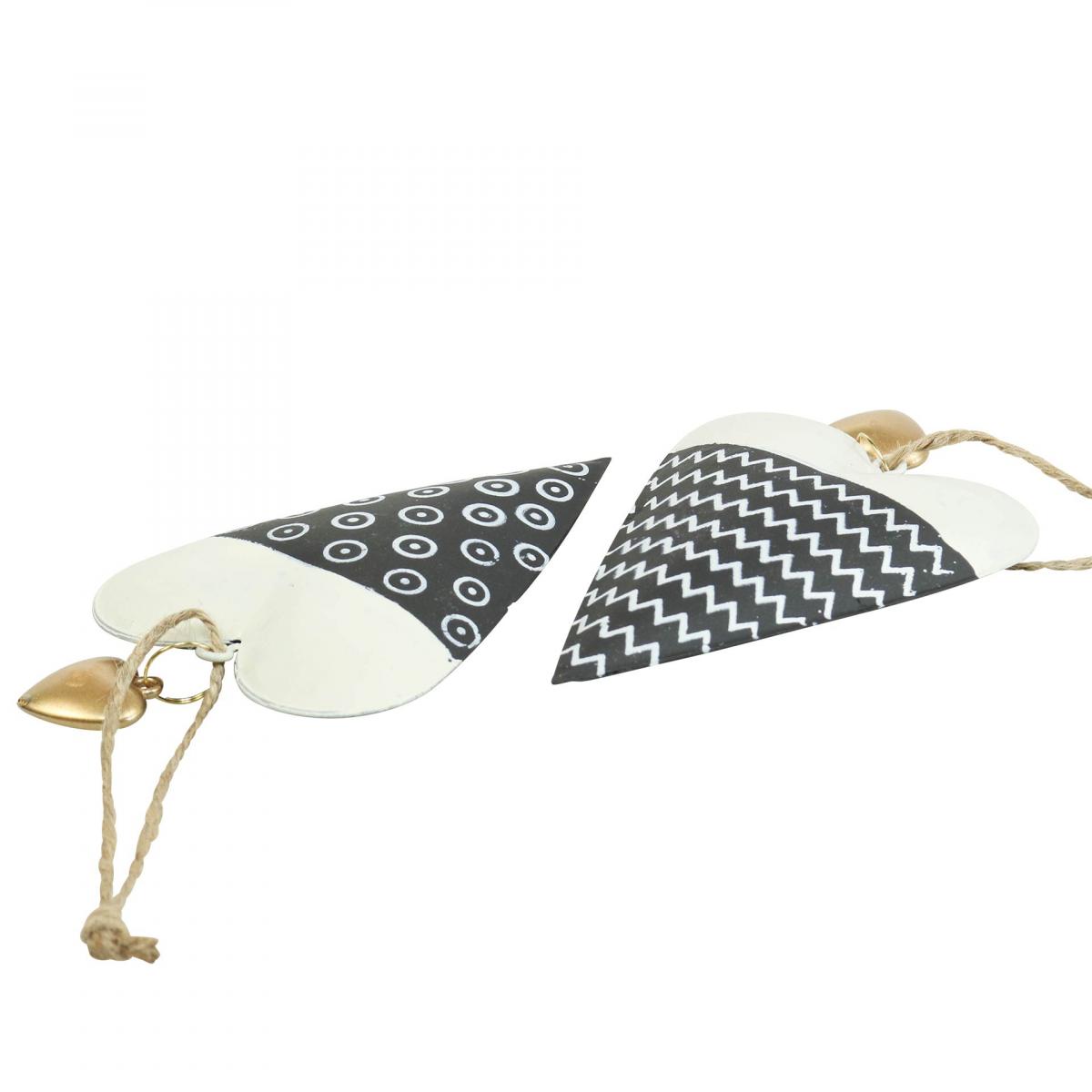 Produktname: Herz Schwarz Weiß Metall Deko zum Hängen 7,5×11cm 4 St