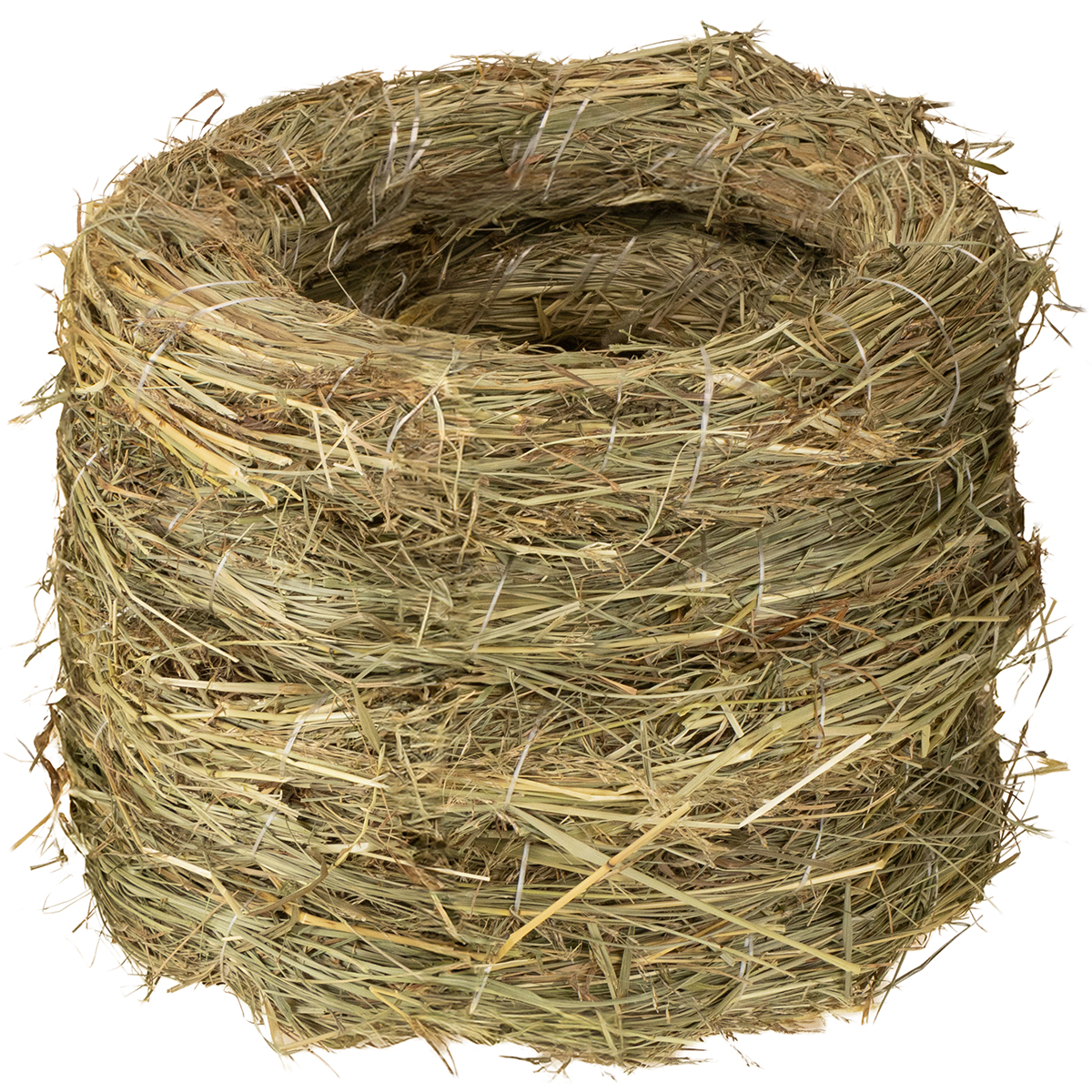 Die Heukränze sind als Paket zu insgesamt 5 Stück zusammengeschnürt und sind alle per Hand hergestellt. Dafür wurde hochwertiges Heu ausgesucht, das dann zu einem Ring gerollt und anschließend mit einer Nylonschnur in Form gebunden ist. Deswegen können die Maße auch immer leicht abweichen; so besitzen die Kränze einen Außendurchmesser, der ungefähr zwischen 26 und 27 Zentimeter liegt. Der Innendurchmesser beträgt dabei circa 19 Zentimeter und die Höhe in etwa 4 Zentimeter.