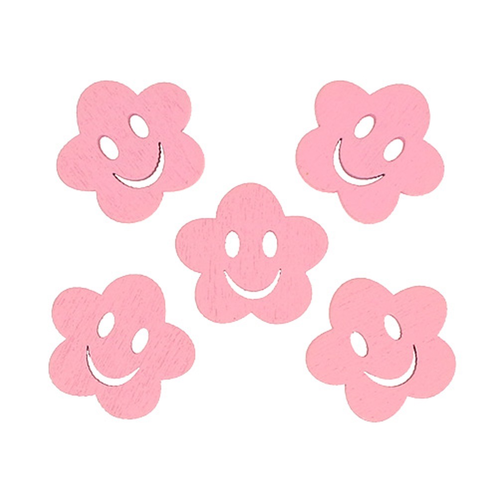 Produktname: Holzblume mit Gesicht Rosa 2,5cm 48 St