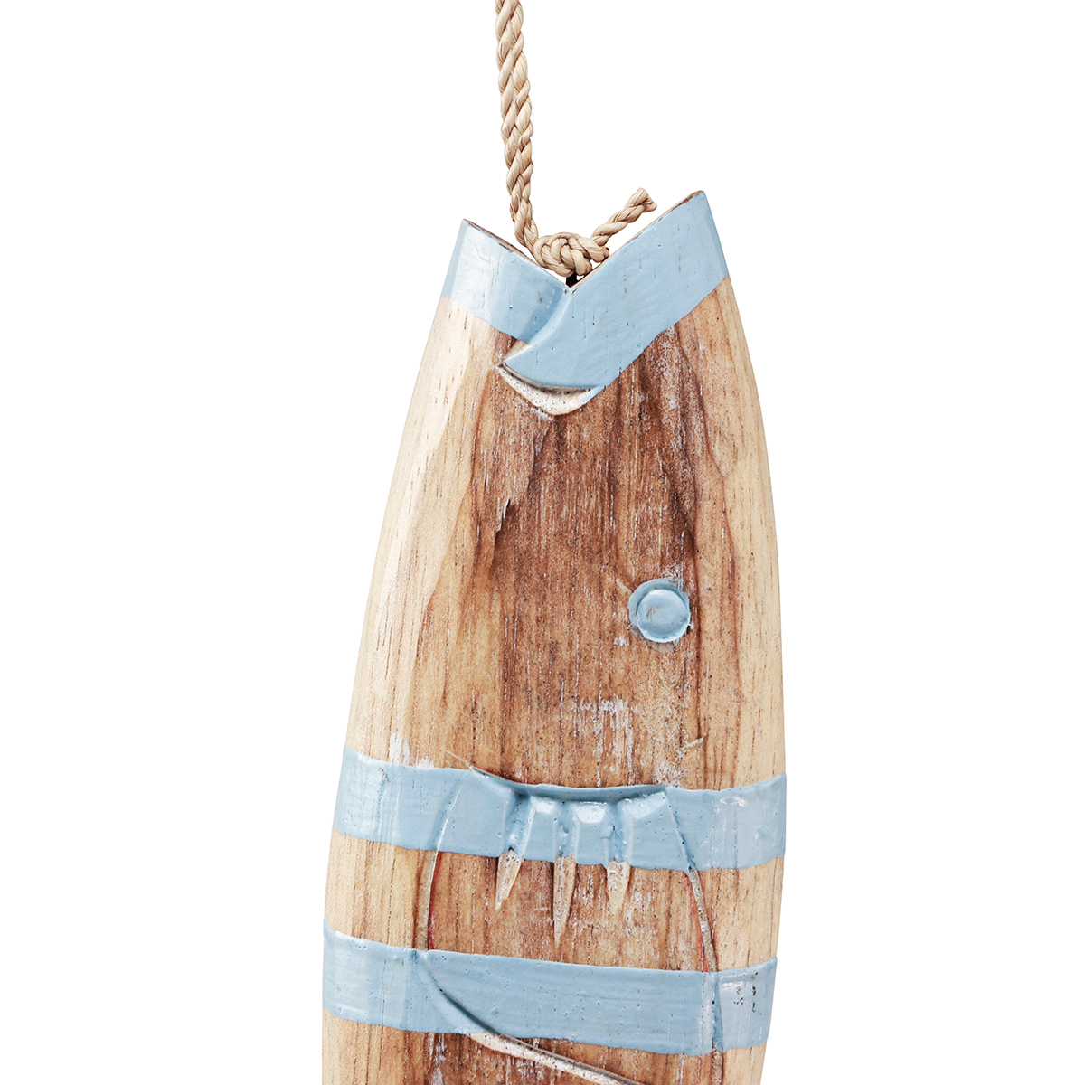 Jeder der drei gemusterten Holzfische ist mit einem Aufhänger aus Naturkordel versehen, sodass nach Herzenslust dekoriert und geschmückt werden kann.