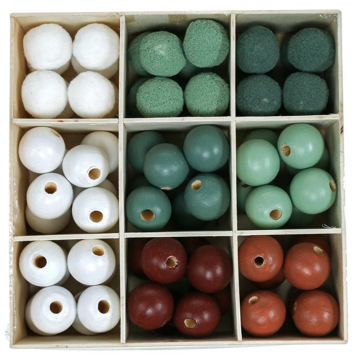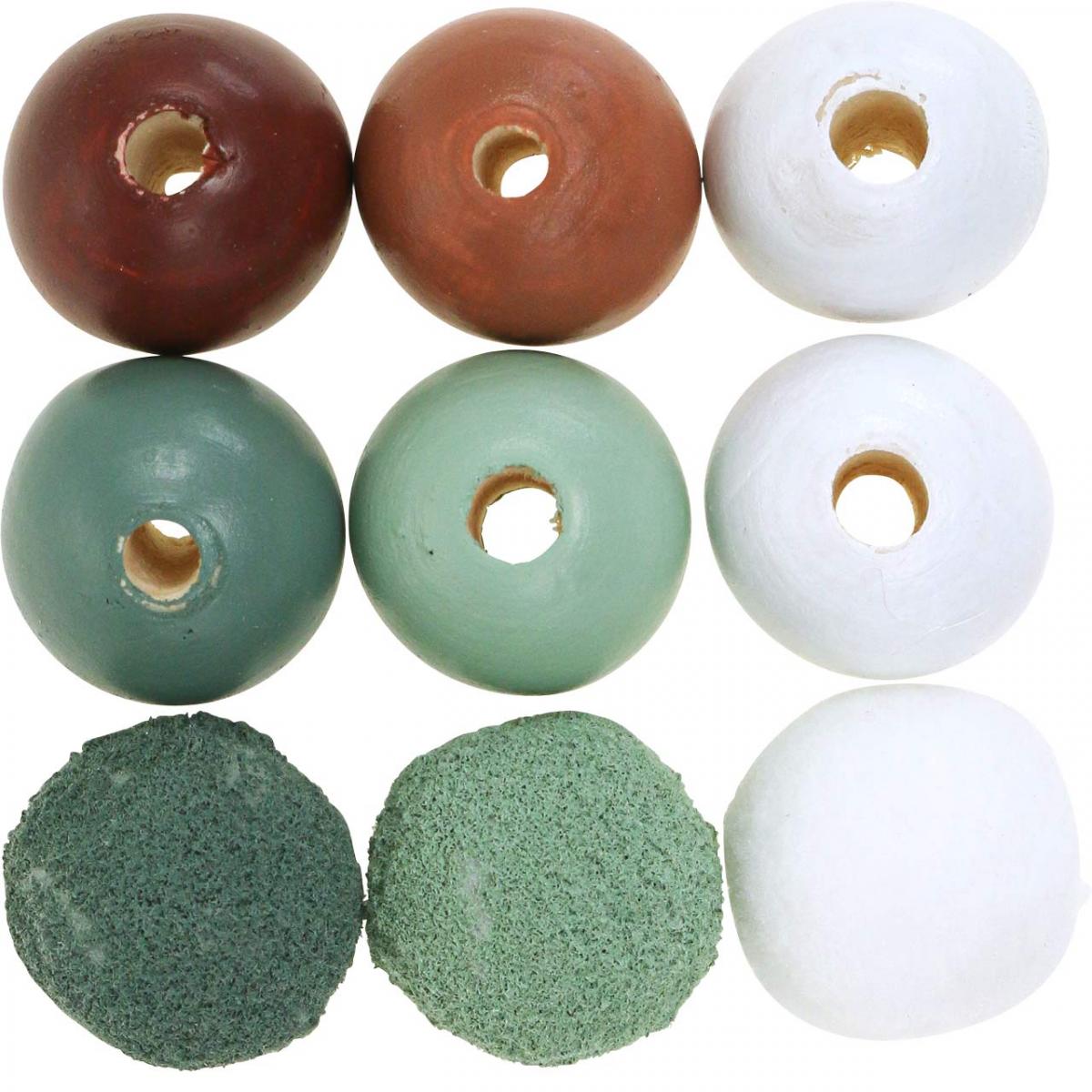 Gestalten Sie herrlichen Perlenschmuck zum Aufhängen oder benutzen Sie die Kugeln als Streudeko zum Schmücken eines Tisches oder eines Tabletts. Die Auswahl aus insgesamt 36 Kugeln besteht aus 24 Holzkugeln mit Loch und 12 weiteren Dekokugeln.