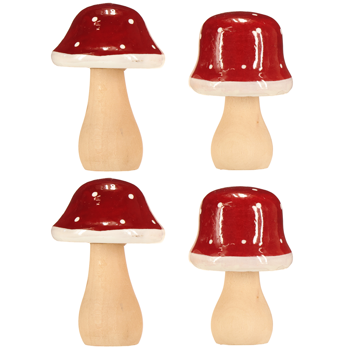 Produktname: Holzpilze Fliegenpilze Deko Holz FSC Rotbraun H6,5/7cm 4 St