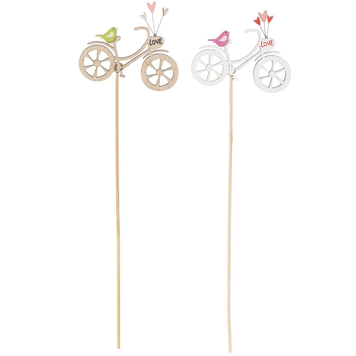 Auf der Suche nach einer besonderen Dekoration, die den Frühling bei Ihnen einziehen lässt? Die Holzstecker mit Fahrradmotiv sind genau das Richtige, um Ihrem Wohnzimmer, Balkon oder Ihrer Terrasse eine romantische Note zu verleihen. Mit zarten Details wie einem naturfarbenen Holzfahrrad, kleinen Herzen und liebevollen Vögelchen zieht diese Dekoration alle Blicke auf sich. Wie wäre es zum Beispiel mit einer kreativen Anordnung in einem frischen Frühlingsstrauß oder als Highlight im Pflanzkübel? Der natürliche Look der Stecker passt perfekt zum Landhausstil oder auch zu modernen floristischen Akzenten.