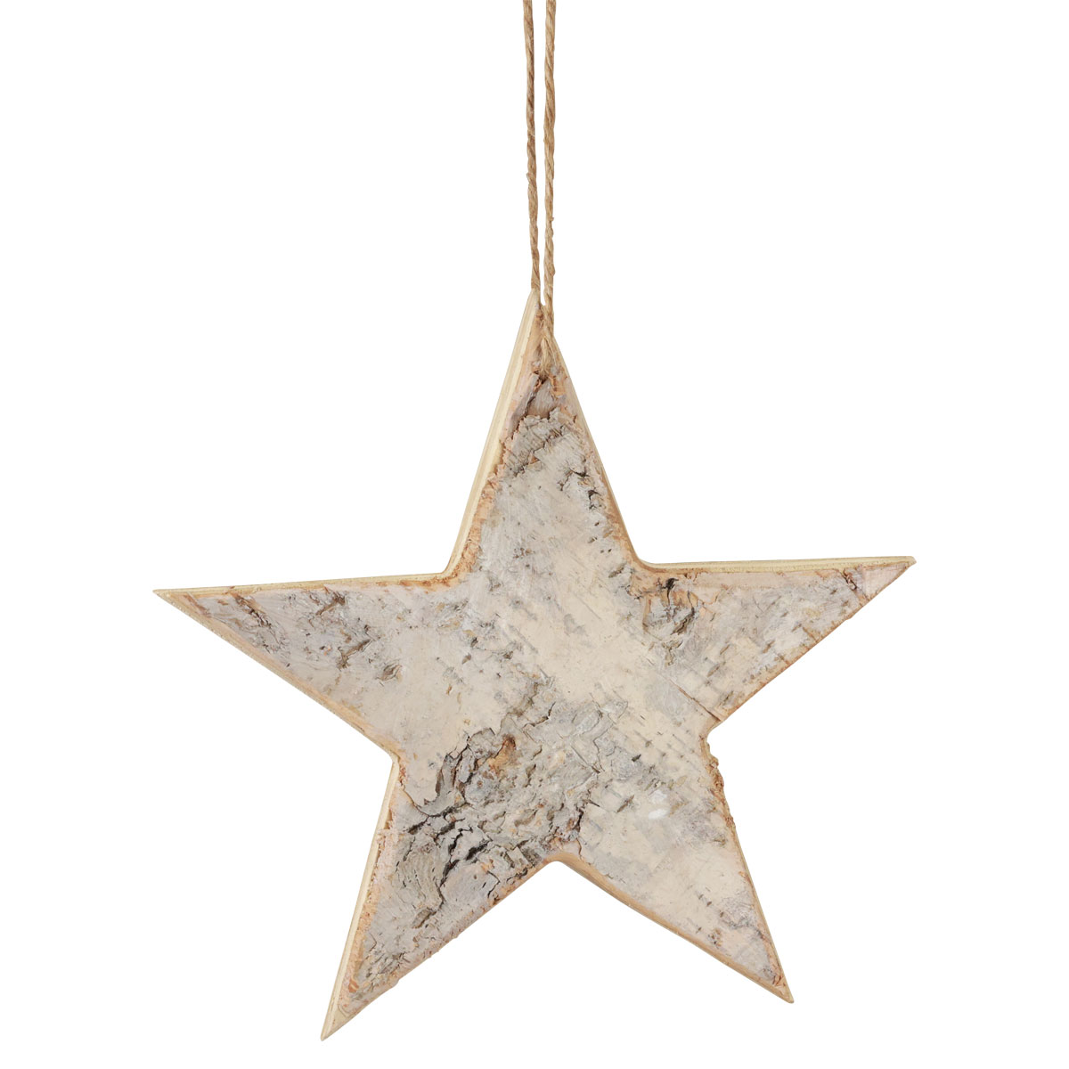 Diese rustikale Deko ist eine nostalgisch anmutende Weihnachtsdeko zum Hängen. Der Holzstern mit Birkenrinde in Weiß passt wunderbar in jede Naturdeko.