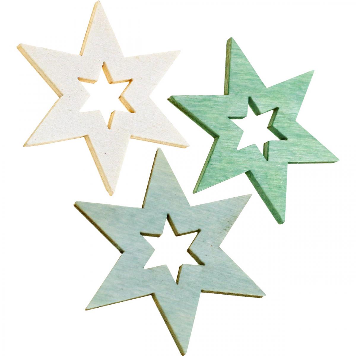 Produktname: Holzsterne Deko Streudeko Weihnachten Grün H4cm 72 St