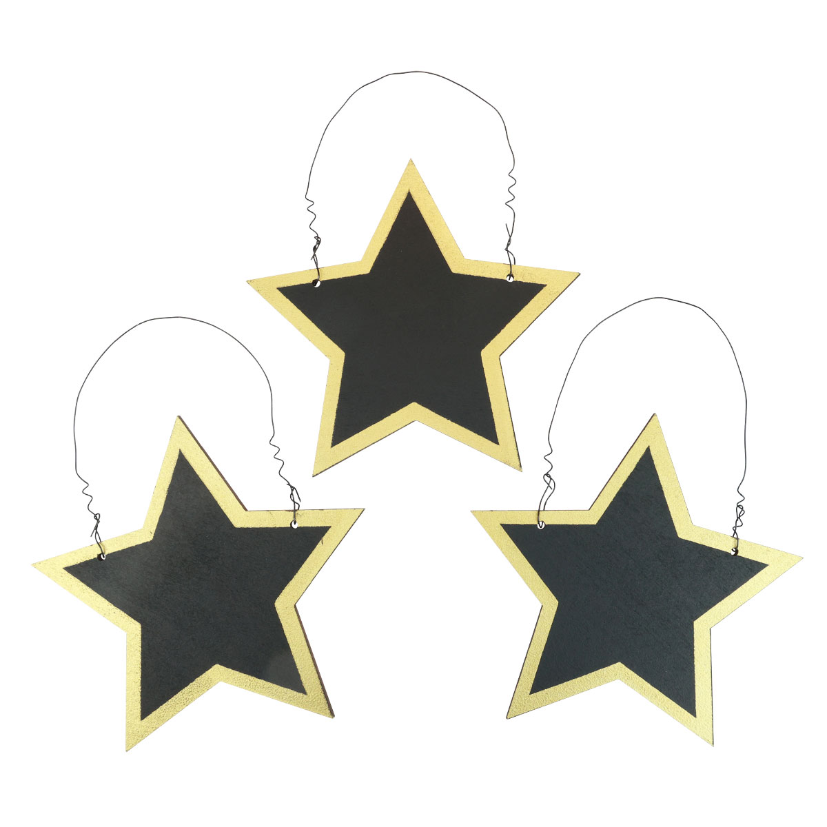 8 Holzsterne erhalten Sie im Pack. Sie alle haben bereits den Aufhänger aus Draht, der ebenfalls schwarz ist. Die Deko-Sterne sind beidseitig schwarz und einseitig golden verziert, sodass die Dekohänger sich vor allem gut für den Weihnachtskranz eignen oder als Wanddeko über der Kommode oder ein Sideboard.