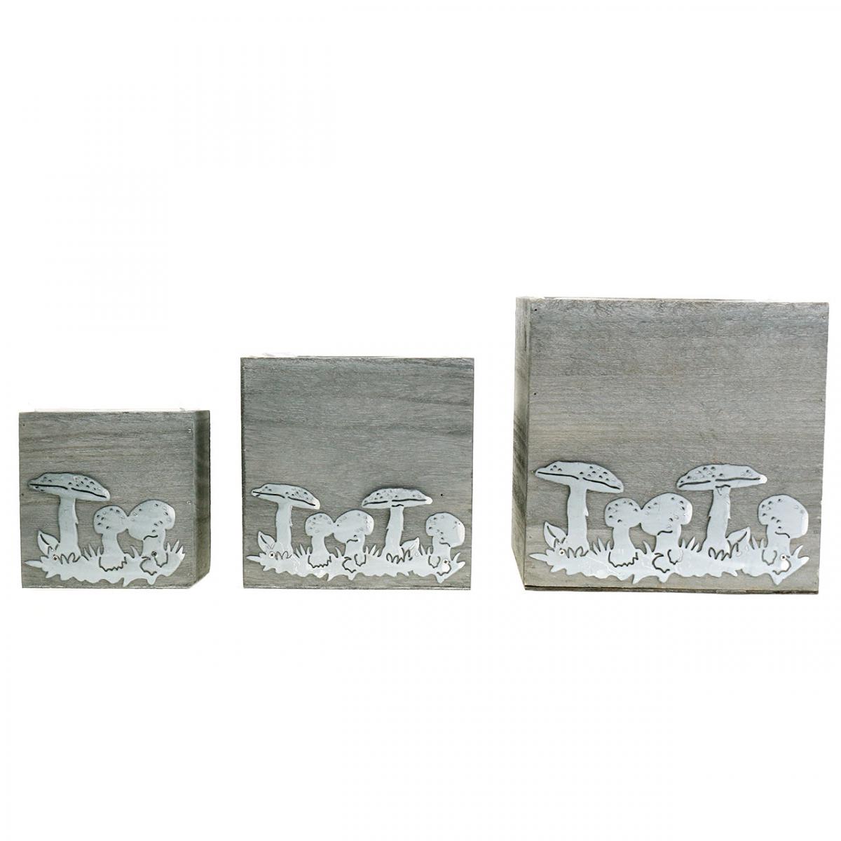 Holzwürfel mit Pilzen, Herbstdeko, Pflanzkiste 20/16/12cm 3er-Set