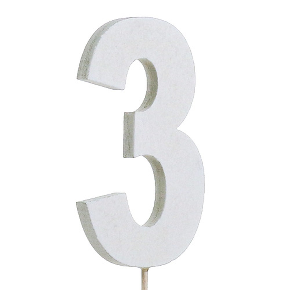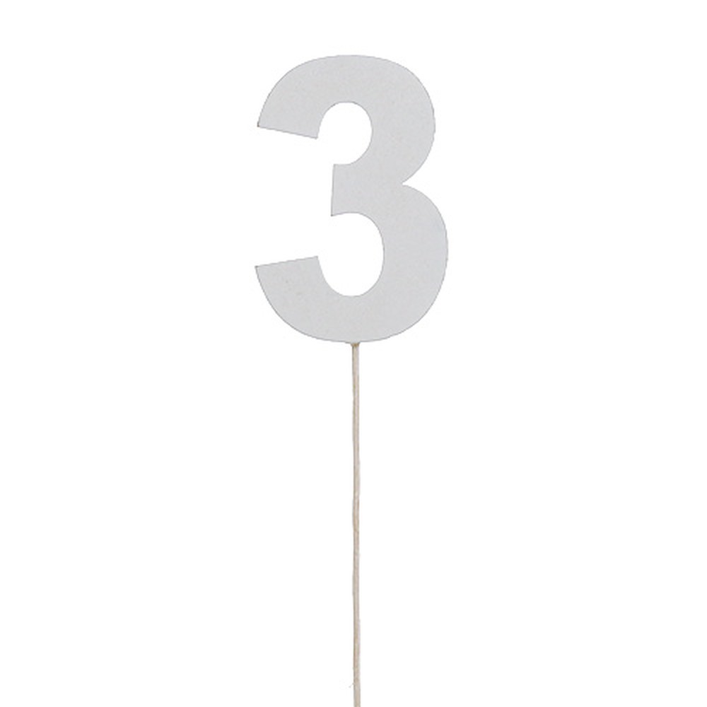Produktname: Jubiläumszahl „3“ am Stab Weiß L27cm 10St
