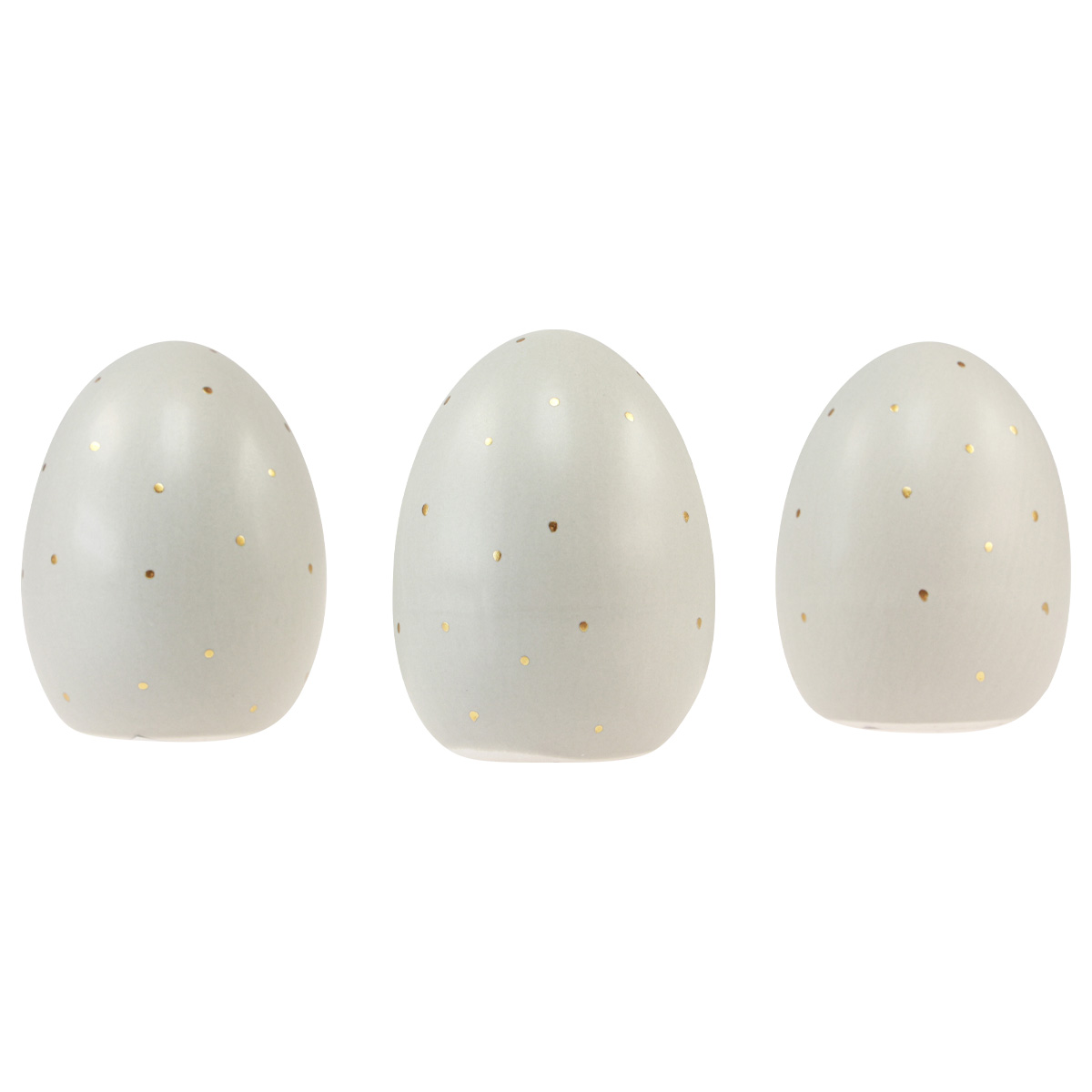 Produktname: Keramik Ostereier Deko Grau Gold mit Punkten 8,5cm 3 St