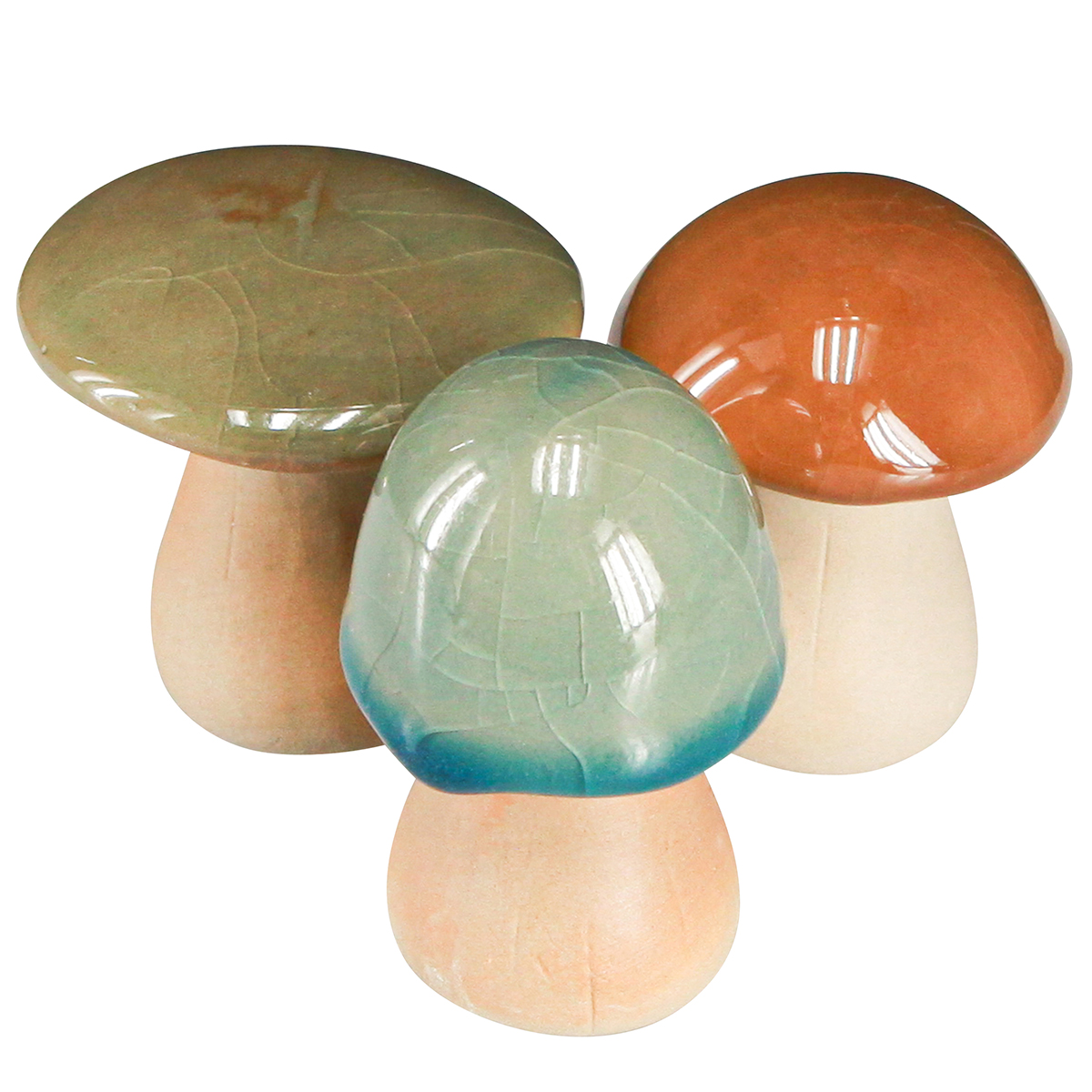 Produktname: Keramik Pilze Deko Braun Grün Blau Herbstdeko H6-7,5cm 3 St