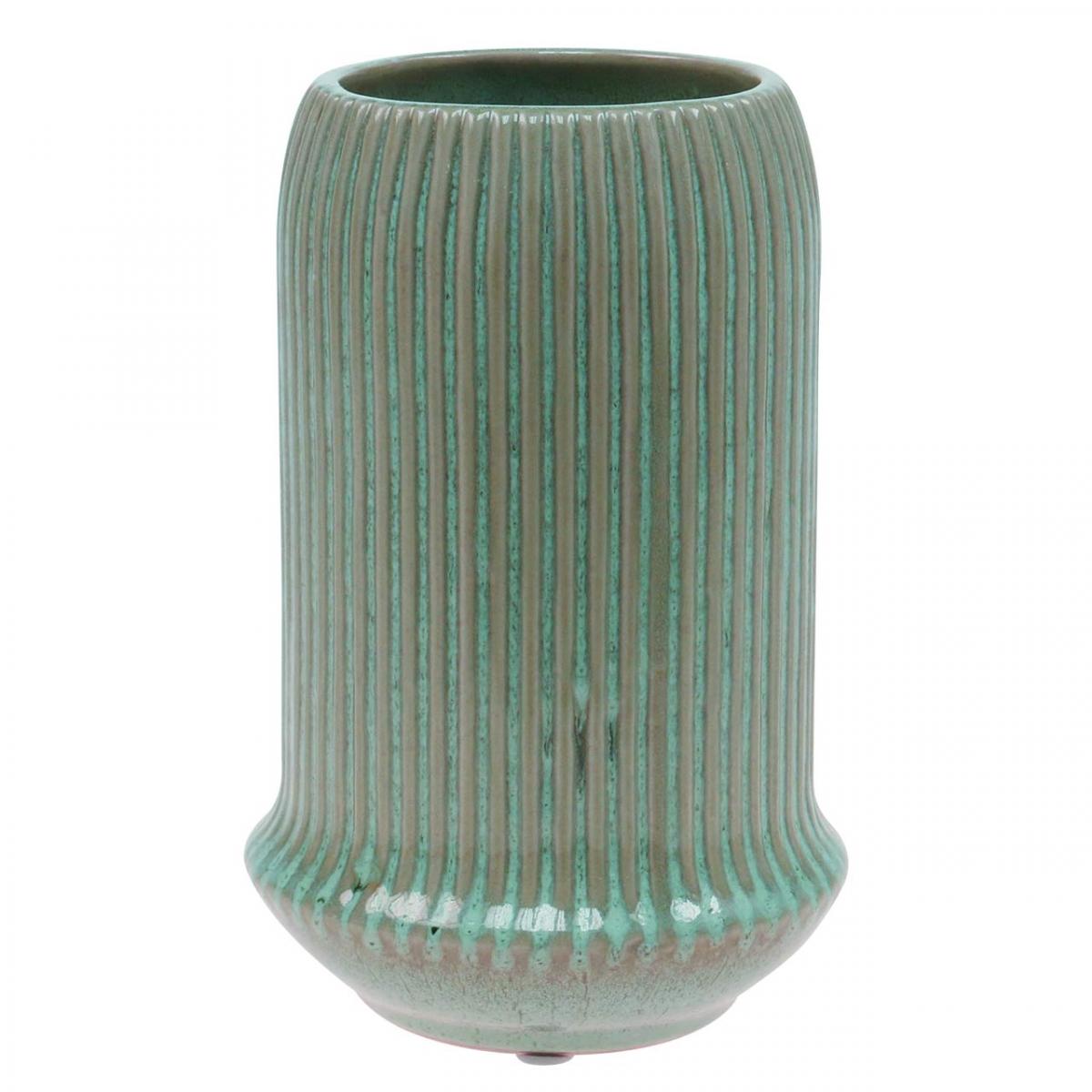 Produktname: Keramik Vase mit Rillen Keramikvase Hellgrün Ø13cm H20cm